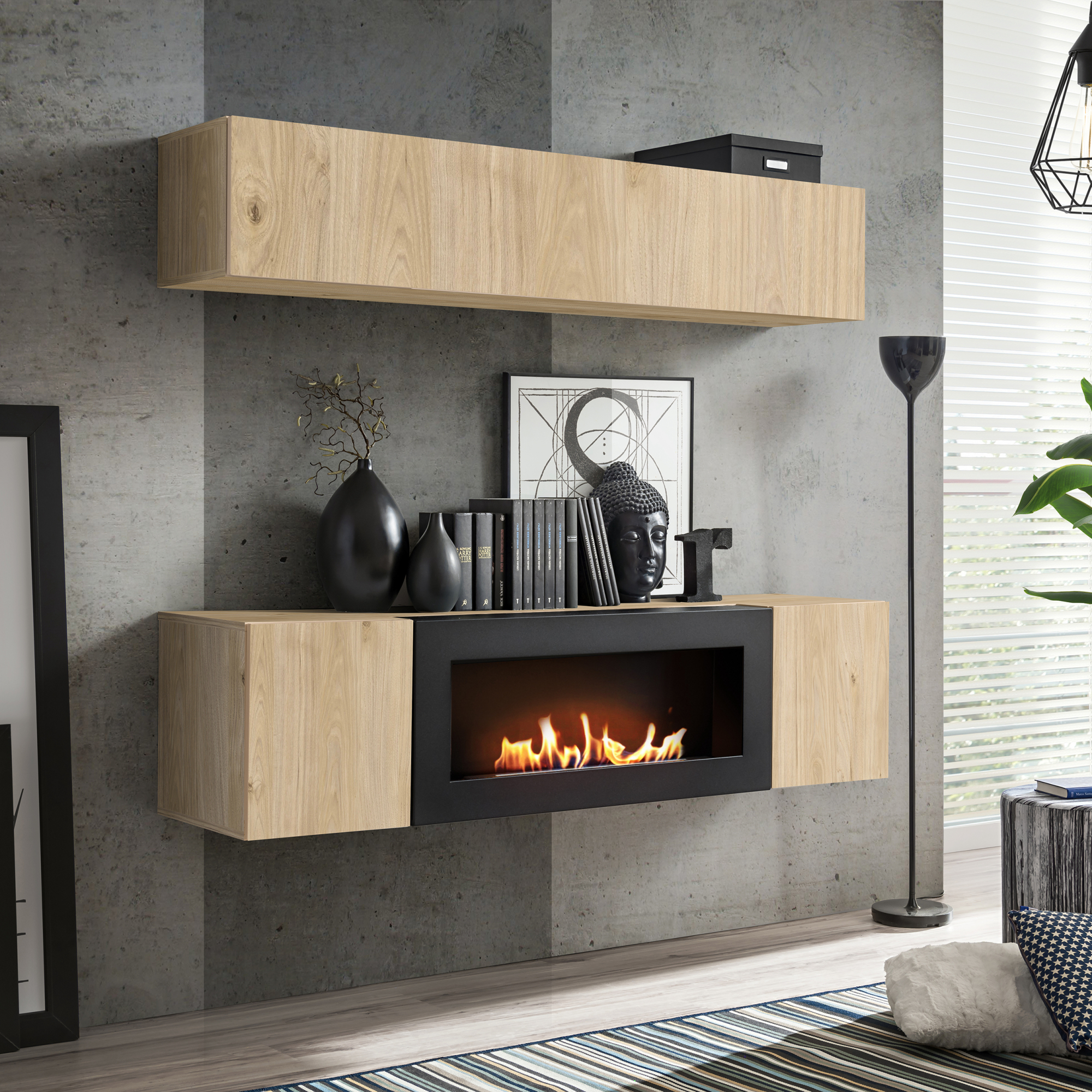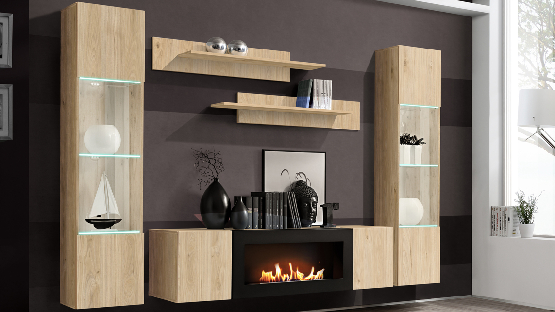 Komoda wisząca z biokominkiem SBK Hickory Jackson