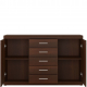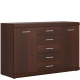 Szukasz mebli praktycznych, uniwersalnych, ale posiadających styl i charakter? Taka jest komoda z kolekcji Imperial - doskonałe rozwiązanie uzupełniające aranżację każdego pomieszczenia, od sypialni, poprzez salon, po przedpokój. Elegancka komoda, o klasycznym układzie wnęk ukrytych za drzwiczkami i szeregiem szuflad pośrodku, nadaje się do przechowywania wielu drobiazgów, ubrań, zastawy stołowej lub tekstyliów. Ciemny, intrygujący i romantyczny dekor Orzech Imperial nadaje komodzie klasycznego wyglądu, zapewniając jednocześnie ciepłą i przytulną atmosferę pomieszczenia. Natomiast proste, minimalistyczne uchwyty w kontrastującym kolorze srebra są ozdobą mebla, wnoszącą nutę współczesnego designu. Takie połączenie pięknej klasyki i nowatorskiego wzornictwa to idealny sposób na uzyskanie ponadczasowej aranżacji, która nieprędko podda się szybko przemijającym trendom.