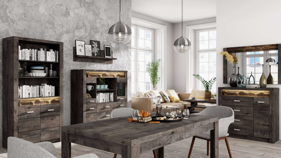 Witryna I-3`INDIANAPOLIS, to elegancki model dopracowany w każdym detalu. Uniwersalny wygląd sprawia, że idealnie wpisze się w estetykę jadalni lub salonu. Wybór kolorystyki ułatwi podjęcie decyzji przy wyborze mebli. Do dyspozycji są trzy rodzaje wybarwień. Jesion ciemny dodaje meblom ekskluzywnego blasku, jesion jasny doskonale wpisze się w klasyczne aranżacje, z kolei craft biały będzie pasował do aranżacji w stylu skandynawskim.