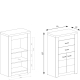 konfigurowalny Szafka z systemu Indianapolis wykonana została są z najwyższej jakości materiałów. Korpus i fronty wykonane z płyty laminowanej strukturalnej 16 mm (widoczna i wyczuwalna faktura drewna), górny wieniec pogrubiony do 48 mm. Obrzeże frontów i korpusów są okleinowane odpornym na uszkodzenia ABS. Szafka posiada solidne metalowe uchwyty. Tył szafki wykonany z płyty HDF.