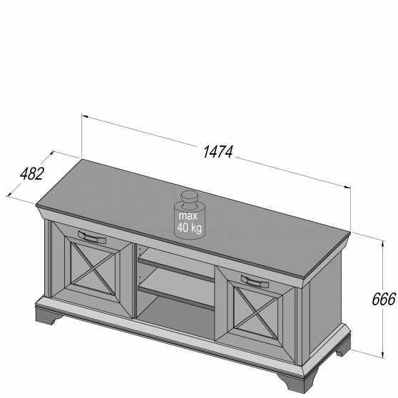 Mała szafka RTV z kolekcji mebli Kashmir to propozycja idealna do niewielkiego salonu. Mebel swoim wykonaniem oraz kolorystyką nawiązuje do stylistyki prowansalskiej, ale pięknie będzie się prezentował również w klasycznych wnętrzach. Szafka RTV składa się z pojedynczych drzwiczek i szuflady, oraz otwartej półki na sprzęt elektroniczny. Całość została osadzona na masywnych nóżkach, a wyjątkowy charakter mebla podkreśla dodatkowo ozdobny wieniec i stylizowane uchwyty w kolorze starego srebra.