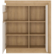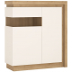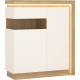 Kredens z kolekcji Lyon Jasny sprawdzi się we wnętrzach urządzonych w nowoczesnym stylu, stając się ich prawdziwą ozdobą. Ten przykuwający wzrok każdego mebel to przede wszystkim kolorystyka, którą tworzą Dąb Riviera Jasny na prawym boku i wieńcu, oraz połyskliwa biel na lewym boku i froncie. Lewą część mebla wyposażono w niewielkie przeszklenie, którego barwa doskonale współgra z bazową paletą witryny. To nastrojowe, pełne blasku wybarwienie podkreśla i uwydatnia asymetryczny pasek oświetlenia LED, umieszczony przy górnej i bocznej krawędzi. Praktyczne półki ukryte za drzwiczkami pomieszczą wiele przedmiotów codziennego użytku, a także wyeksponują dekoracje. Staranne wykonanie oraz najwyższej jakości materiały, jak solidny laminat i szkło hartowane, to gwarancja stabilności i bezpieczeństwa użytkowania. Komfortowe korzystanie z mebla gwarantuje również ergonomiczny system bezuchwytowego otwierania i ciche domykanie frontów.