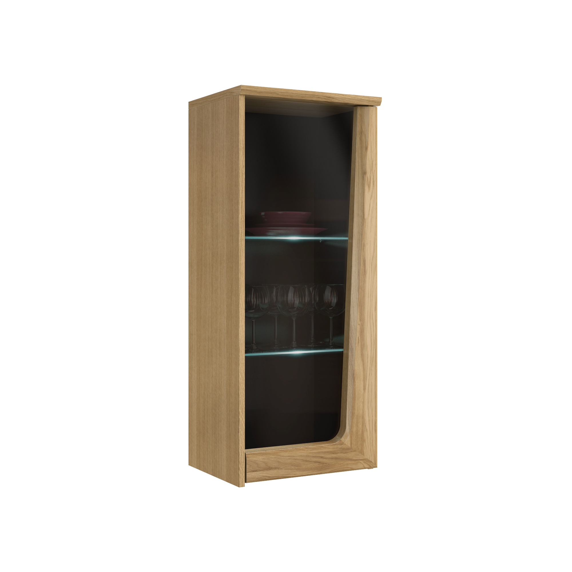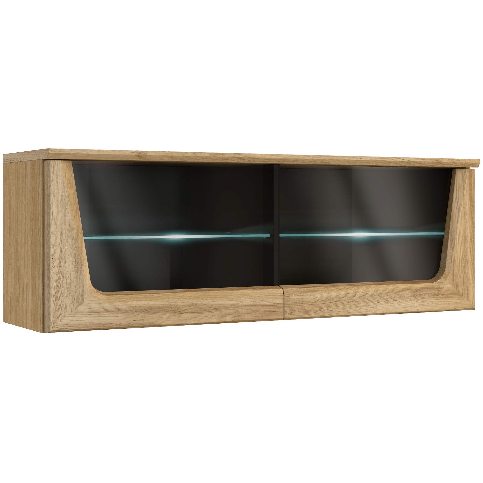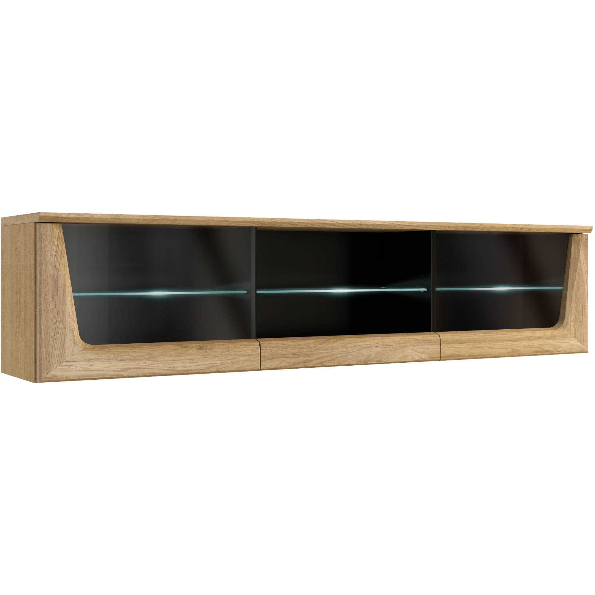 konfigurowalny Półka Maganda doskonale pasuje do pozostałych elementów z kolekcji. Sprawdzi się zarówno w dużych, jak i niewielkich pomieszczeniach, a zestawiona z mniejszym modelem stworzy ciekawą aranżację ściany. Tylną ściankę mebla wykonano z płyty meblowej w okleinie naturalnej, z elementami litego drewna dębowego. Półka pozioma to płyta lakierowana na czarno. Półka może posłużyć jako mebel do przechowywania książek czy płyt, ale również jako miejsce do wyeksponowania dekoracji.