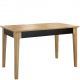 konfigurowalny Bez względu na styl, w jakim zaaranżujemy wnętrze, w jadalni nigdy nie może zbraknąć stołu. Mebel z kolekcji Maganda jest prosty lecz użyte w jego produkcji naturalne surowce dodają mu klasy i charakteru. Blat i nogi wykonane z meblowej płyty w okleinie naturalnej oraz litego drewna dębowego połączono z oskrzynią lakierowaną na czarno. Ponadto powierzchnia stołu została pokryta lakierami odpornymi na wysokie temperatury i alkohol. Mebel dostępny w dwóch modnych wariantach wybarwienia – ciepłym i spokojnym dębie naturalnym lub klimatycznym i intrygującym orzechu antycznym. Stół został również wyposażony w wygodną funkcję rozsuwania, dzięki czemu szybko i łatwo dostosujesz długość jego blatu do swoich potrzeb.