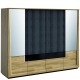 Szafa posiada czworo drzwi wysokich, dwoje niskich i sześć szuflad. Wnętrze mebla podzielono na trzy strefy: w środkowej znajdziesz sześć półek, natomiast w każdej z bocznych półkę i drążek.