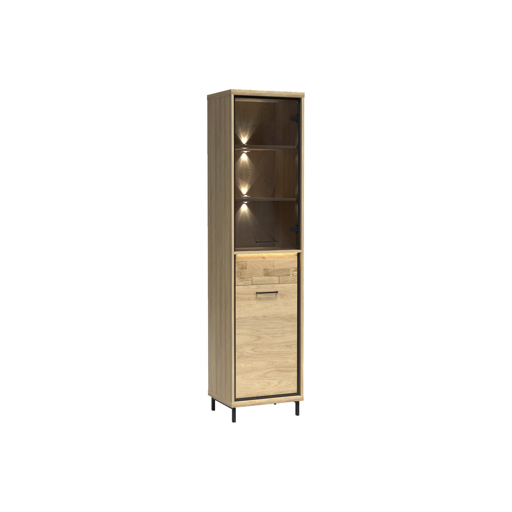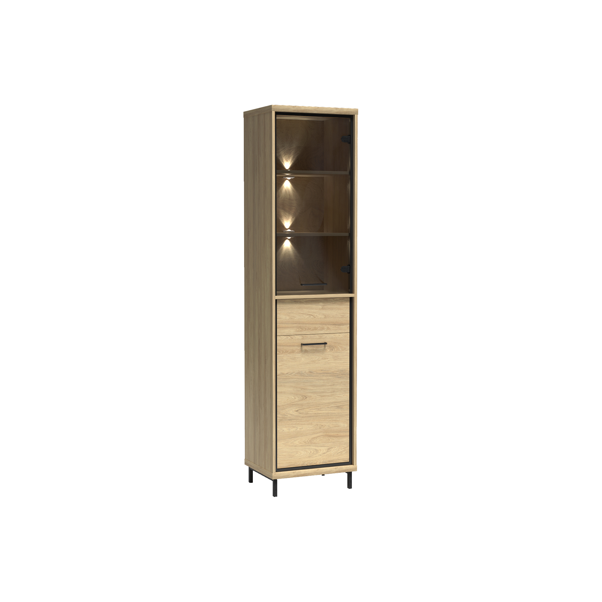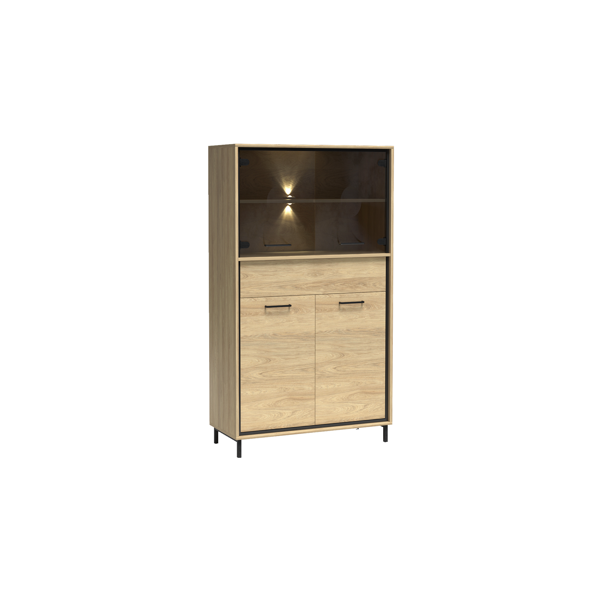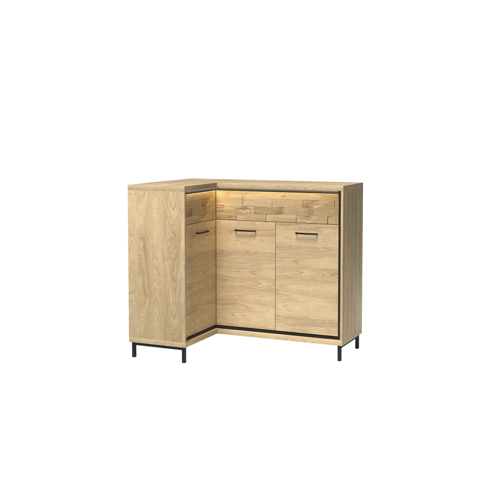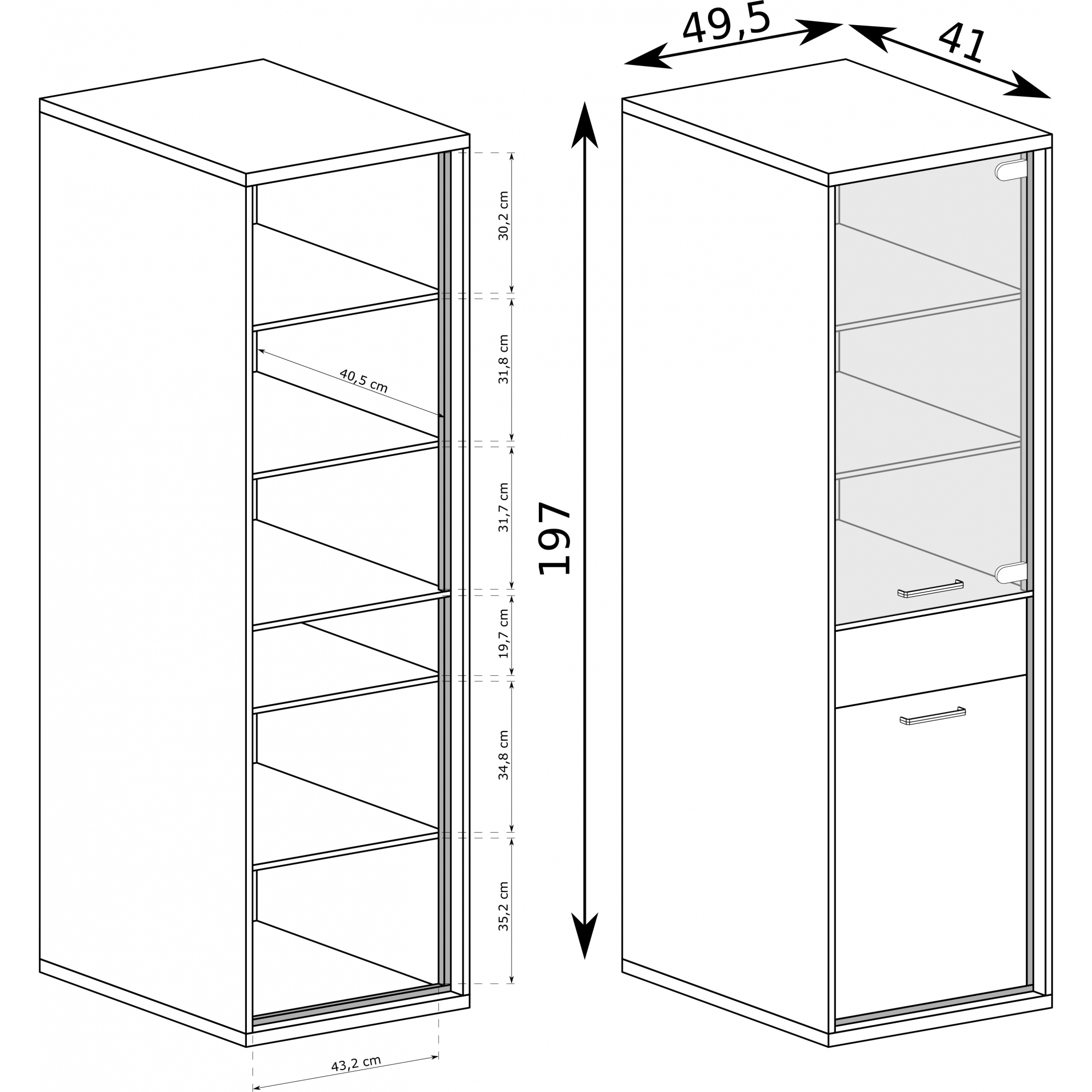 konfigurowalny Mebel dostępny w komplecie z niskimi lub z wysokimi nóżkami. Wysokość całkowita z niskimi 103 cm, wysokość całkowita z wysokimi 111 cm.