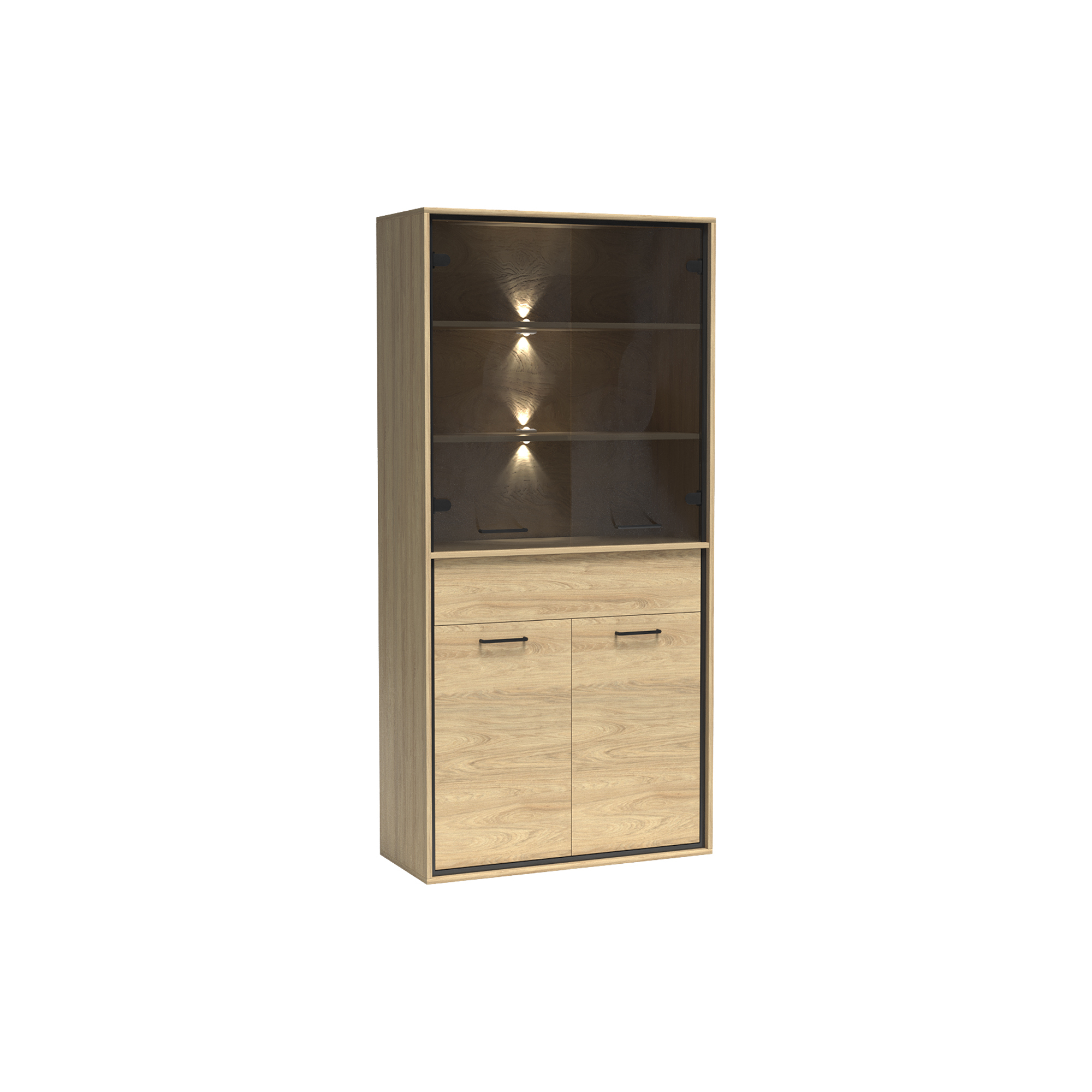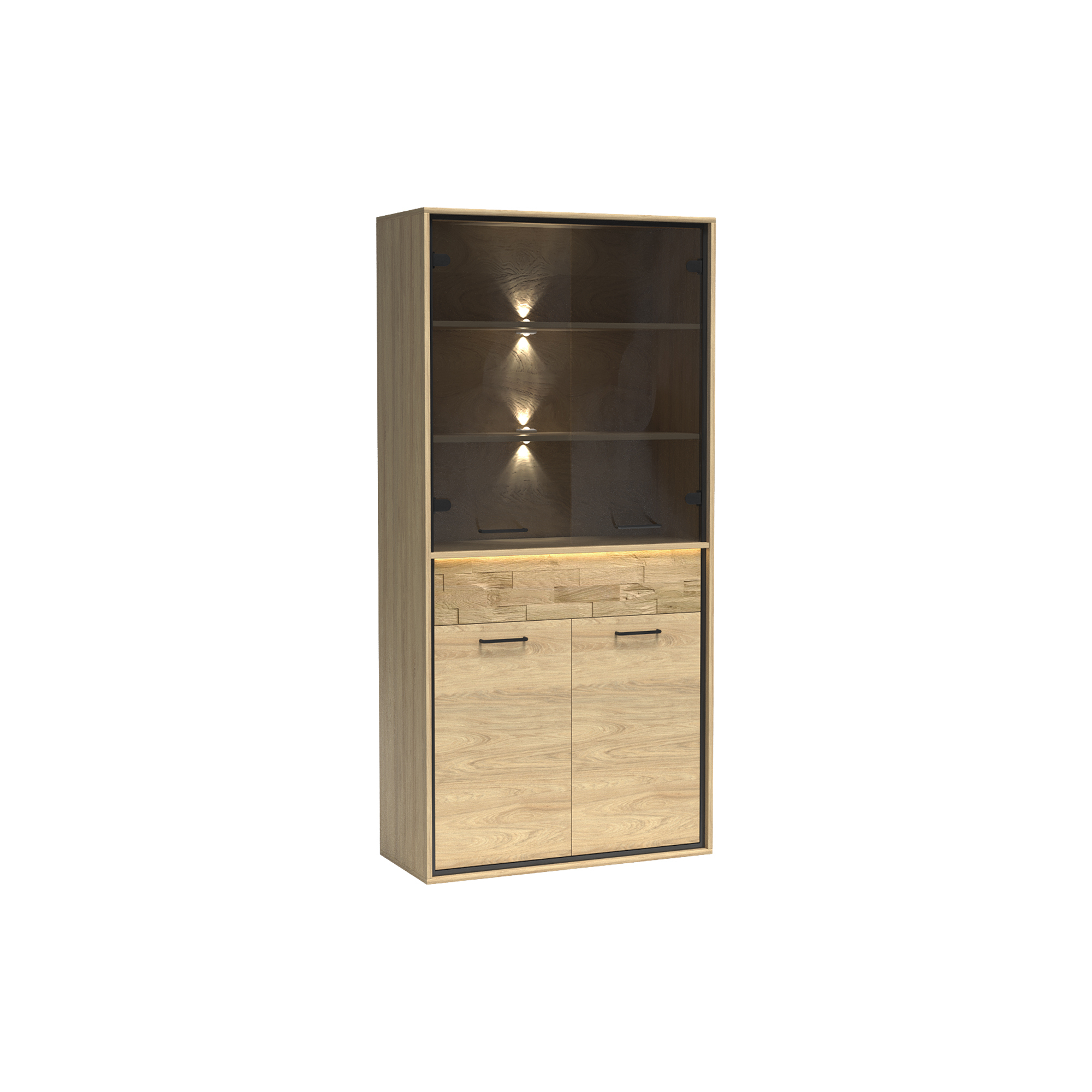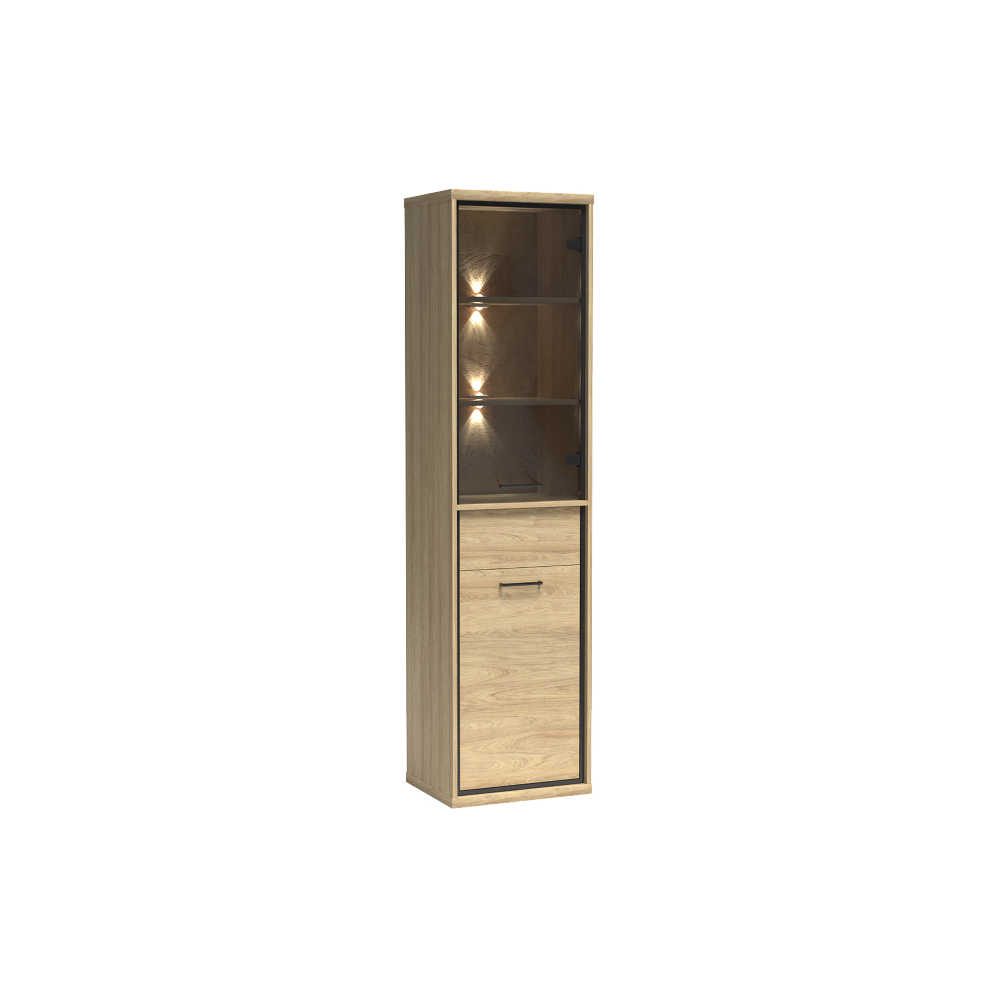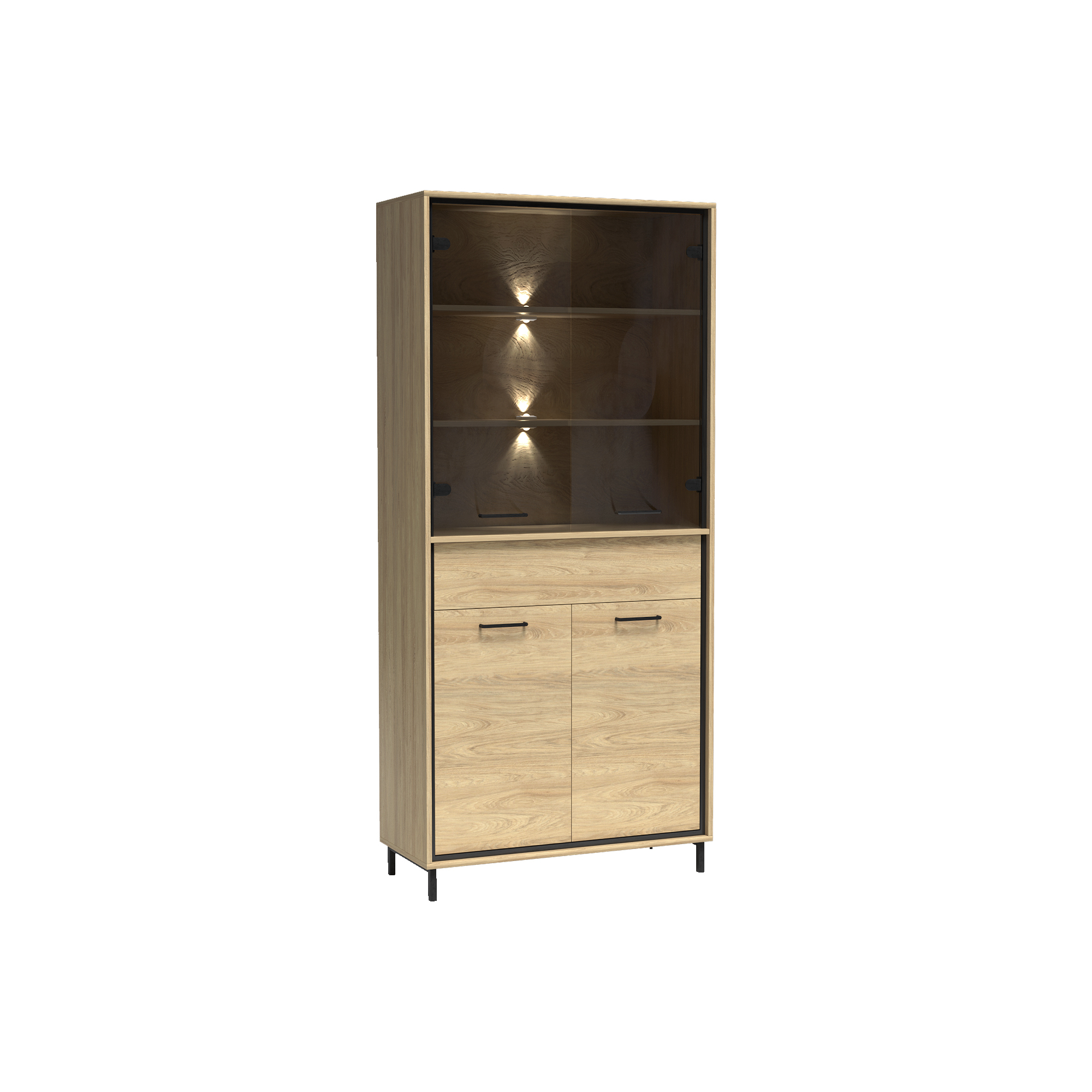 konfigurowalny Mebel dostępny w komplecie z niskimi lub z wysokimi nóżkami. Wysokość całkowita z niskimi 103 cm, wysokość całkowita z wysokimi 111 cm.