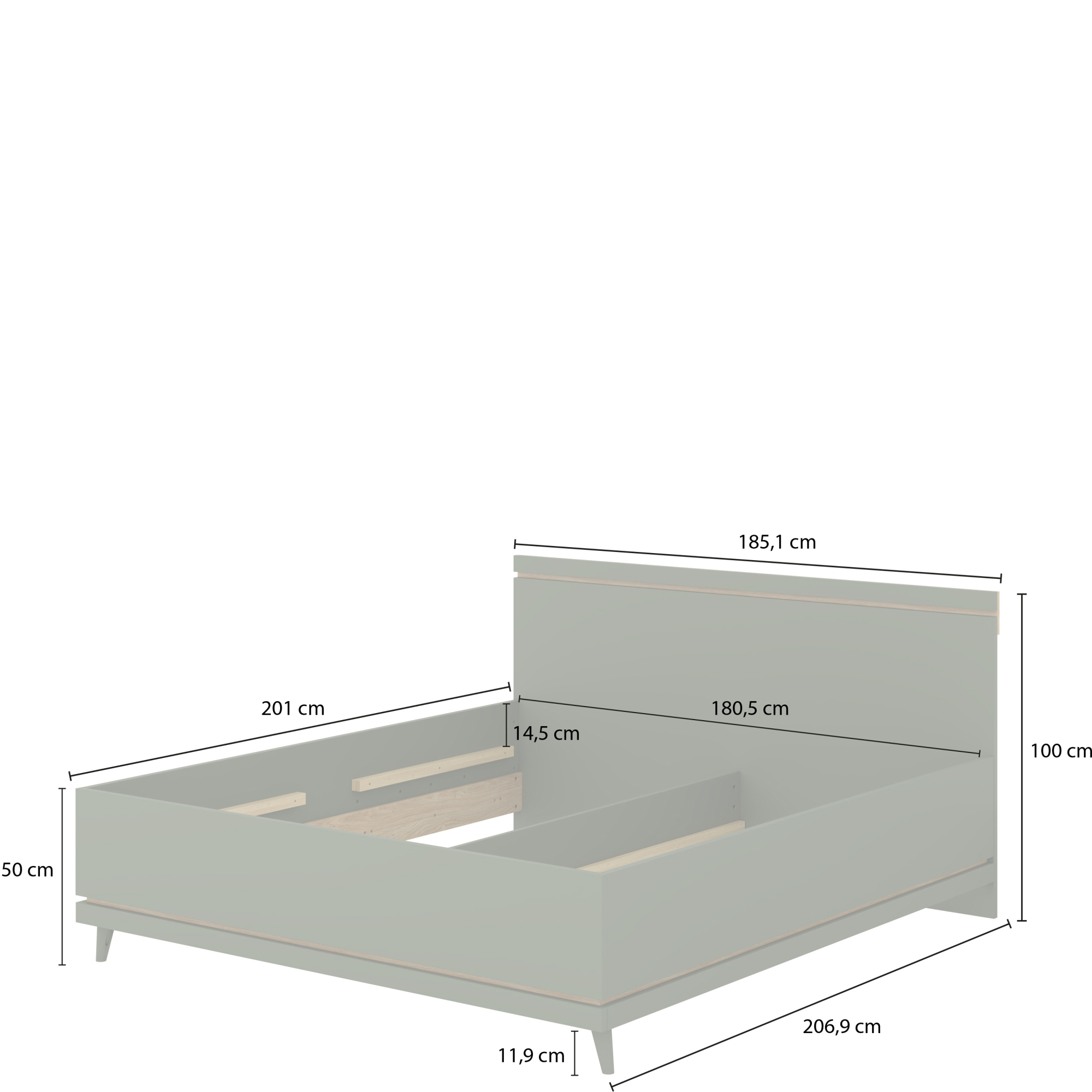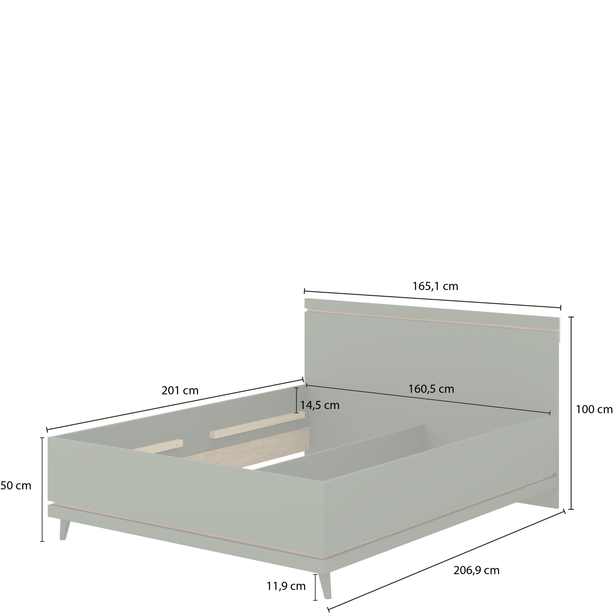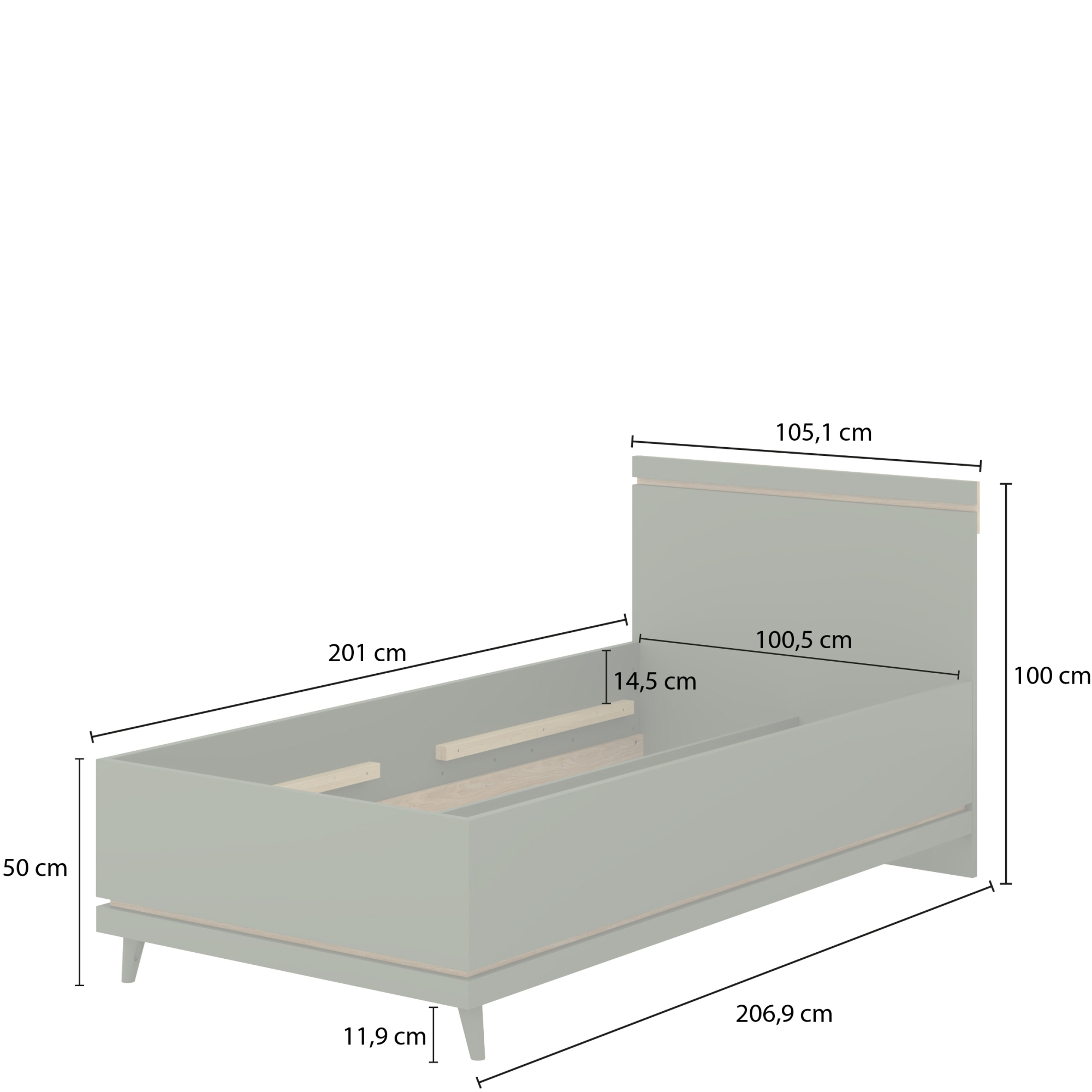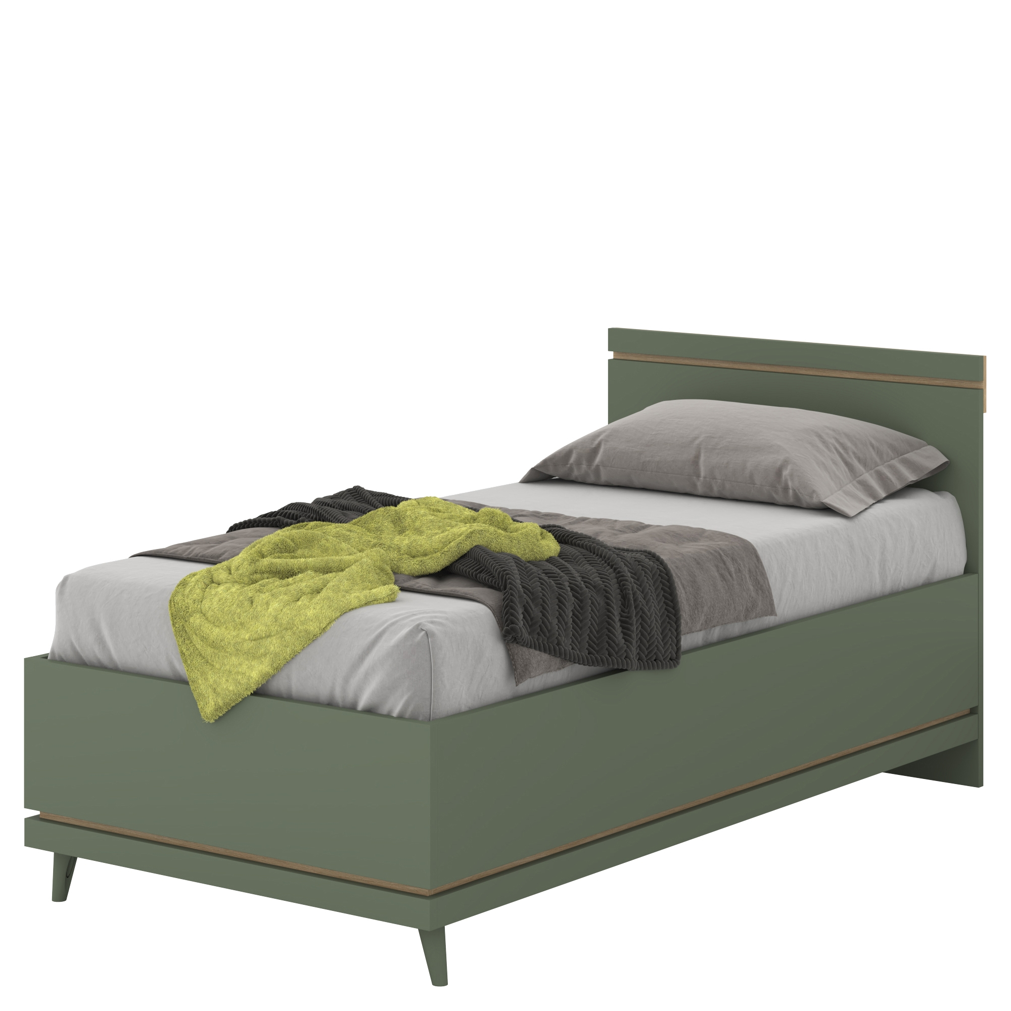 Łóżko 100 x 200 bez stelaża Dąb Olej / Zgaszona Zieleń 24GDOH34 TYP-34