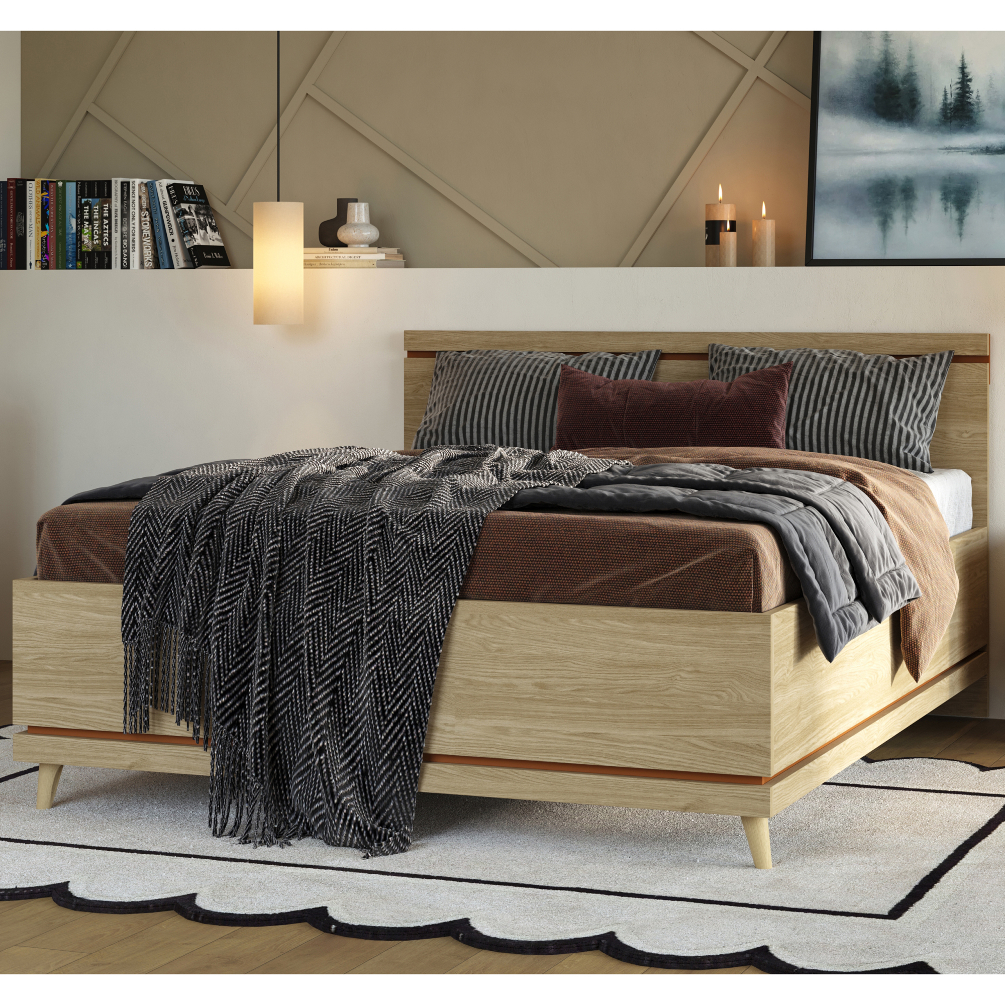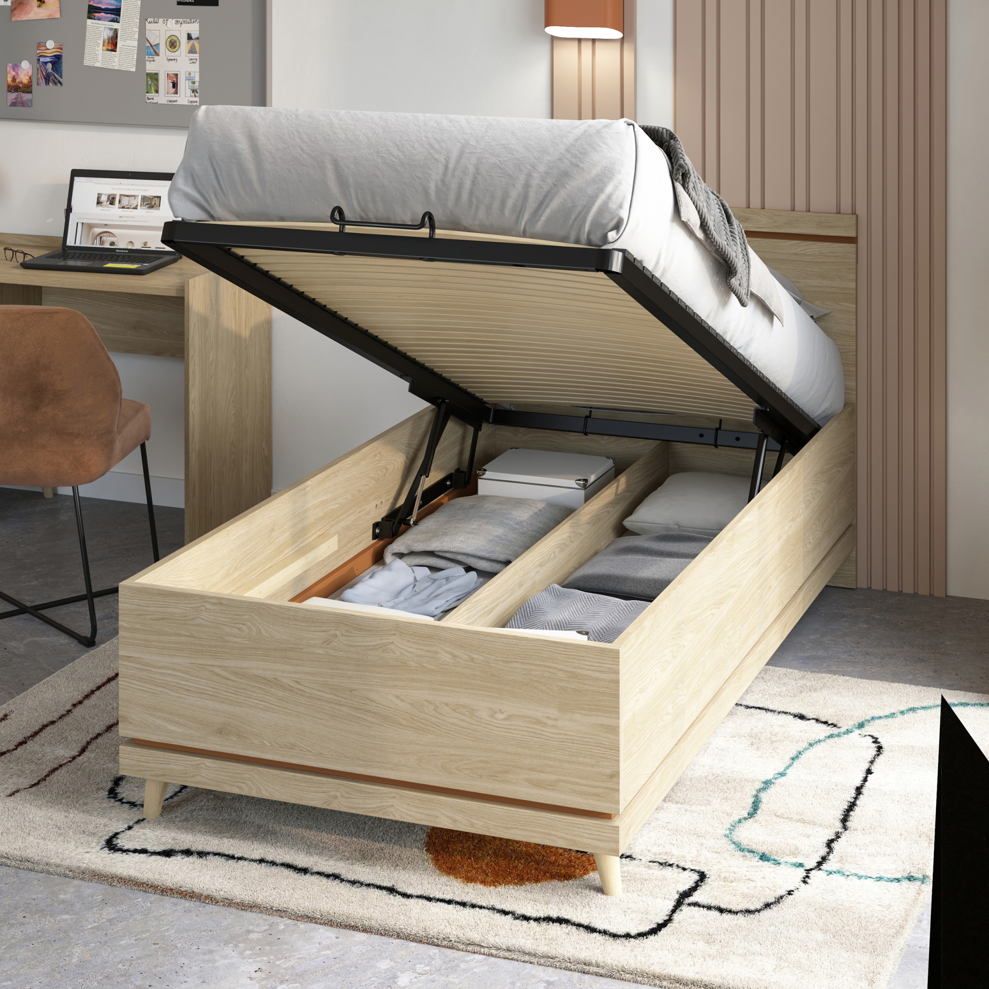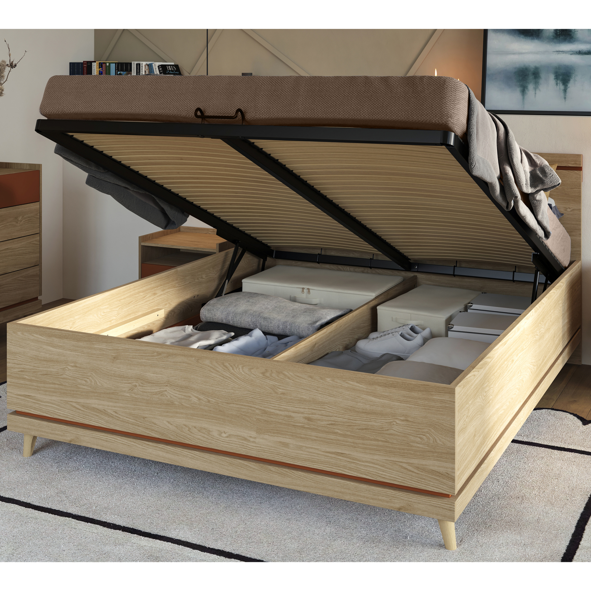 Łóżko 100 x 200 bez stelaża Dąb Olej / Zgaszona Zieleń 24GDOH34 TYP-34 SCANDI Podstawowe