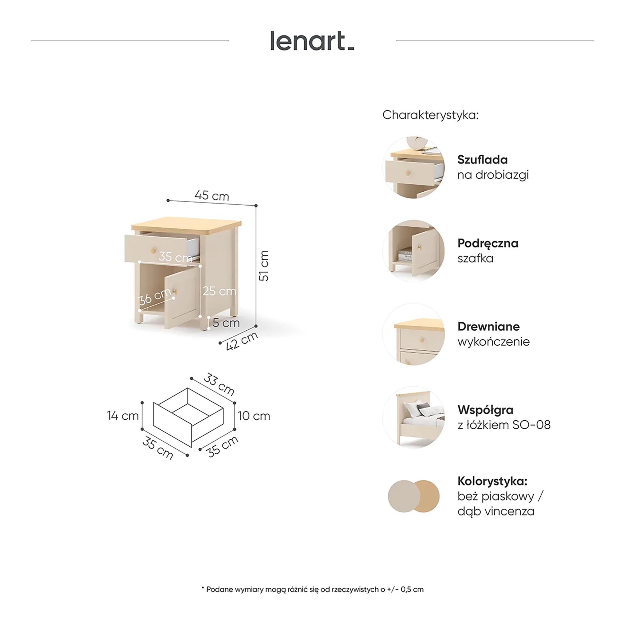Nadstawka z lustrem SO-06 do biurka lub komody STORY BEŻ Podstawowe
