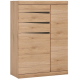 Wysoka, ciekawie zaprojektowana komoda z kolekcji Summer to bardzo uniwersalny mebel, dzięki czemu odnajdzie się zarówno w salonie, jak i jadalni, a nawet w przedpokoju. Ponadczasowy dekor San Remo to nic innego jak ciepło naturalnego drewna, a ciemna aplikacja w kolorze Arusha Wenge dodaje mu wyrazistości i niepowtarzalnego uroku. Modne wybarwienie wspaniale łączy się z masywną konstrukcją mebla, podkreślając prostotę nowoczesnego stylu. Komoda Summer to nie tylko piękny wygląd, ale także duża funkcjonalność. Pojemne półki ukryte za drzwiczkami, oraz trzy szuflady sprawią, że zaprowadzenie ładu i porządku w pomieszczeniu stanie się o wiele łatwiejsze. Komfortowe spowalniacze szuflad i system cichego domykania drzwiczek są gwarancją bezpieczeństwa codziennego użytkowania. Wysoka jakość i solidność wykonania natomiast daje pewność, iż komoda posłuży przez wiele lat.
