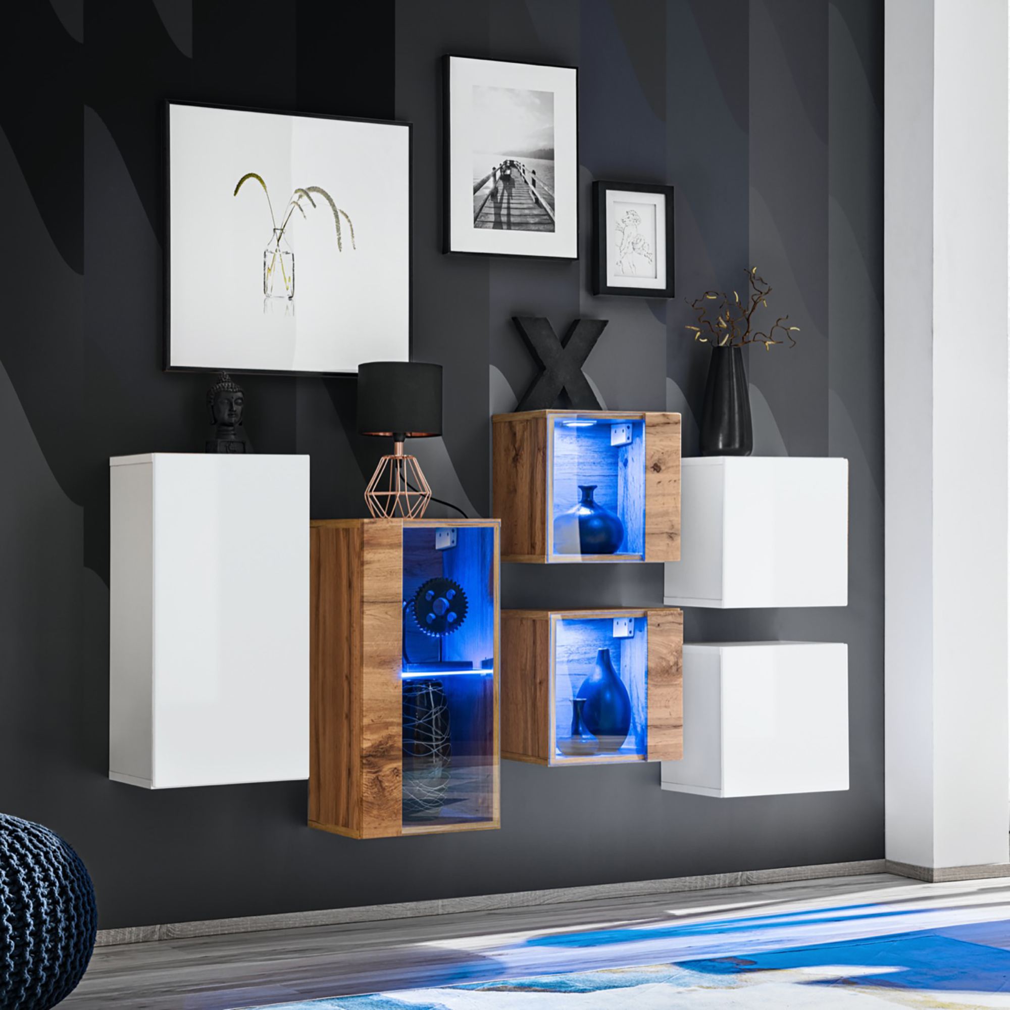 Zestaw szafek wiszących z oświetleniem SB 4Wotan / Biały SWITCH BIAŁY / WOTAN Podstawowe