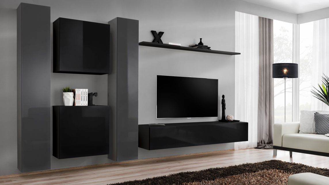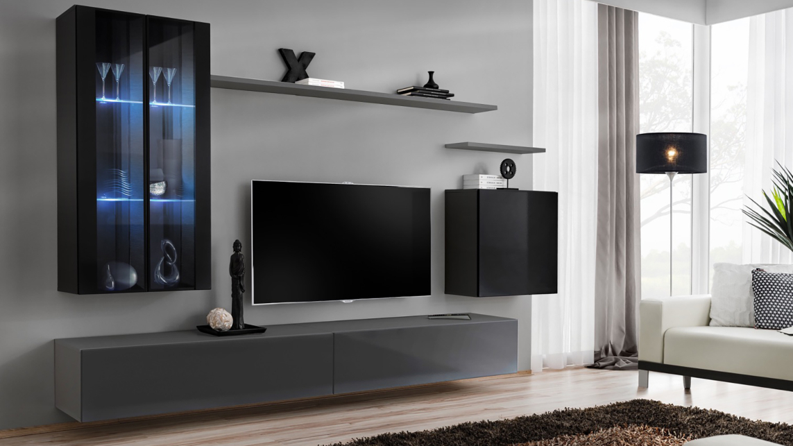 Szafka RTV 1 Czarny / Czarny Połysk SWITCH CZARNY Podstawowe