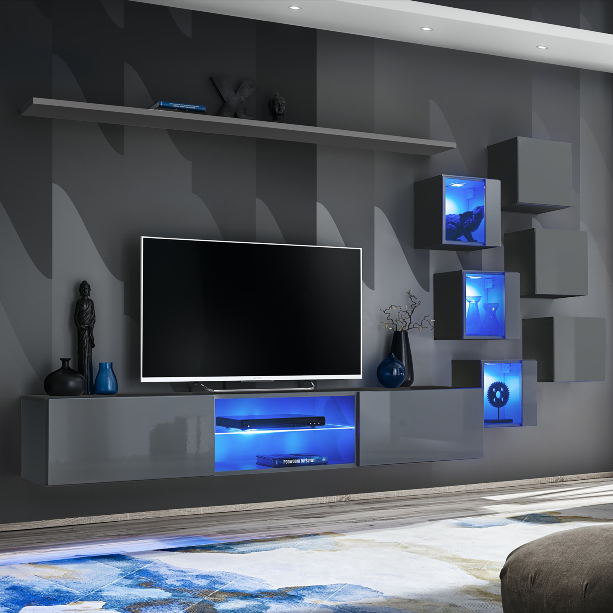 Meblościanka SWITCH SW 17 Grafit Mat / Grafit Połysk SWITCH GRAFIT Podstawowe