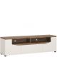 Utrzymana w nowoczesnym stylu szafka RTV z kolekcji Toledo to mebel idealny do domowej strefy relaksu. Wykonana załatała w bardzo solidny sposób, przy użyciu najwyższej jakości materiałów i okuć. Na masywnym blacie swobodnie ustawisz telewizor, a w otwartych wnękach dekoder czy odtwarzacz. Wykonane w tylnych ściankach otwory ułatwią swobodne przełożenie przewodów, zapewniając jednocześnie doskonałą cyrkulację powietrza. Ukryte za drzwiczkami półki, a także szuflada to miejsca, gdzie uprzątniesz wszelkie akcesoria i płyty. Tradycyjne uchwyty zastąpiono charakterystycznym frezowaniem frontów, wyposażonych dodatkowo w bezpieczny system cichego domykania. Kolejnym atutem szafki jest jej wygląd. Prosta forma bryły doskonale komponuje się z kolorystyką, którą tworzy jasny, nieco rustykalny Dąb Stirling i czysta, połyskliwa Biel Alpejska. Ta, jakże zgrana kombinacja, to przejaw najmodniejszych trendów stylistycznych, zapewniający wprowadzenie do pomieszczenia nuty współczesnego designu.