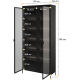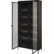 Dzięki smukłym metalowym nóżkom czarna witryna TR-07 prezentuje się niezwykle lekko, co sprawia, że świetnie pasuje zarówno do przestronnych salonów, jak i do mniejszych pomieszczeń. Dodatkowo mebel został wyposażony w zewnętrzne oświetlenie LED, które podkreśla w pełni przeszklone drzwiczki. Istnieje możliwość wyposażenia witryny w oświetlenie wewnętrzne - znajdziesz je w akcesoriach dodatkowych.