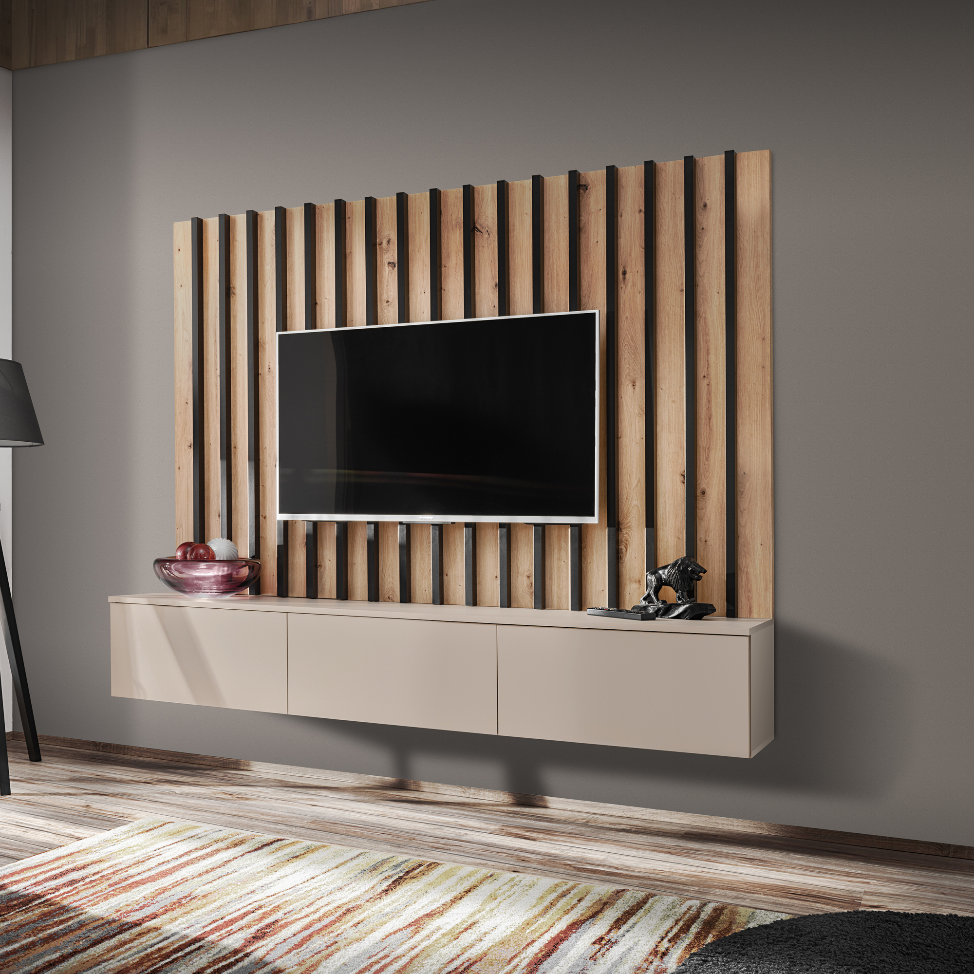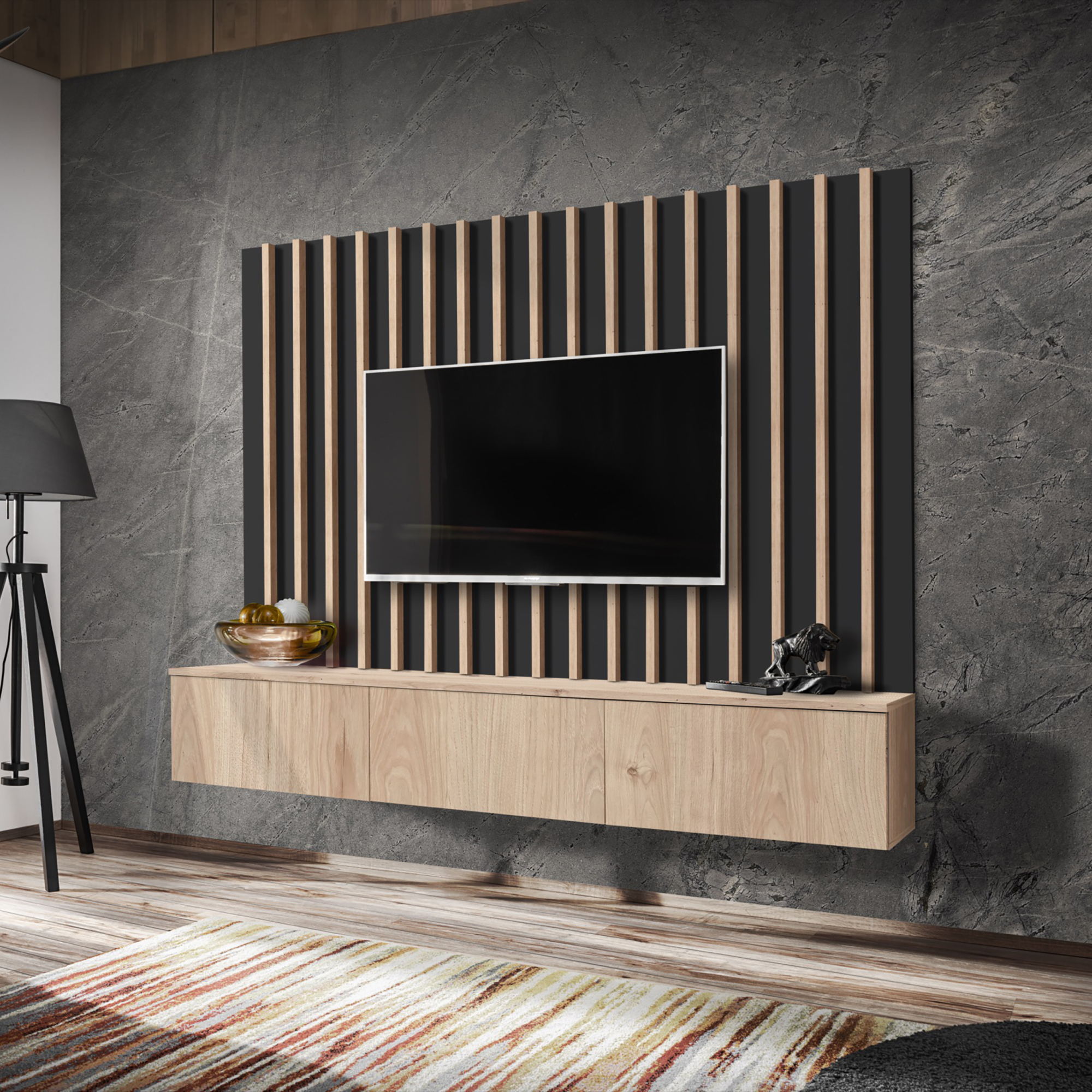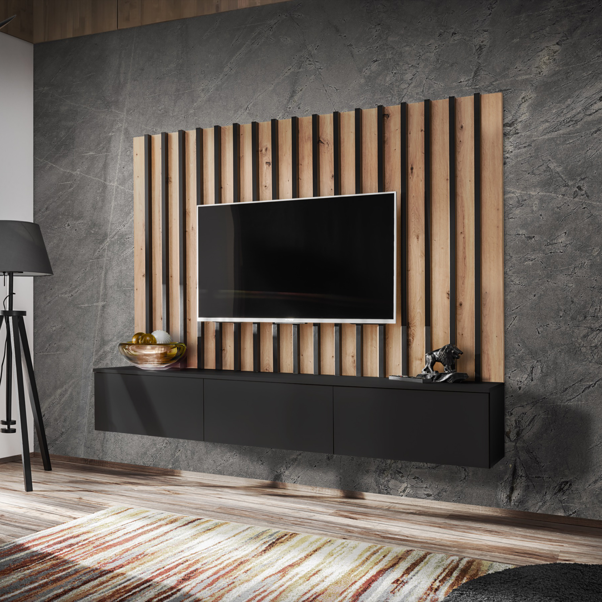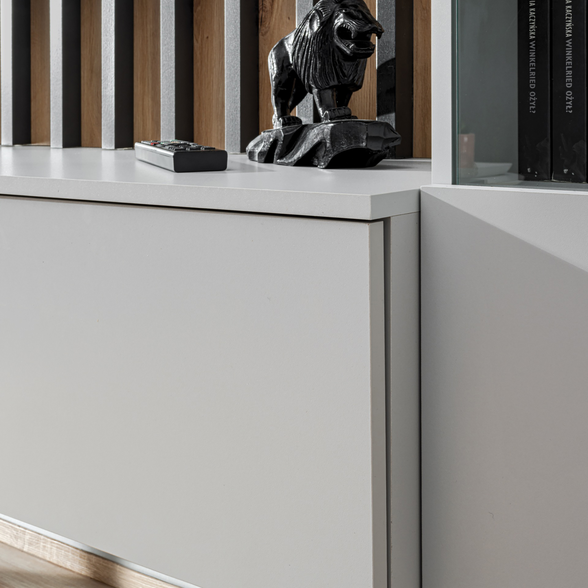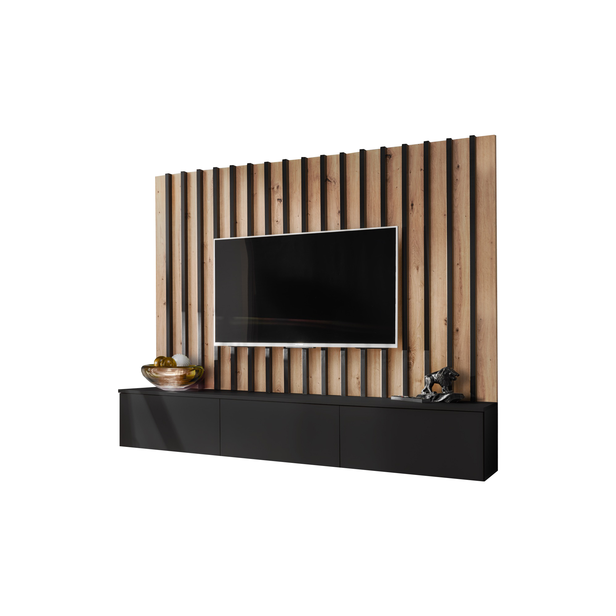 Meblościanka VERTI od ASM Meble to nowoczesne, funkcjonalne rozwiązanie dla osób poszukujących eleganckiego wyposażenia salonu. Cechuje się minimalistycznym designem z prostymi liniami, który doskonale wpisuje się w różne style aranżacji wnętrz. Zestaw oferuje kombinację zamkniętych szafek oraz przestrzeni otwartych, dzięki czemu można wygodnie przechowywać zarówno przedmioty codziennego użytku, jak i wyeksponować elementy dekoracyjne.