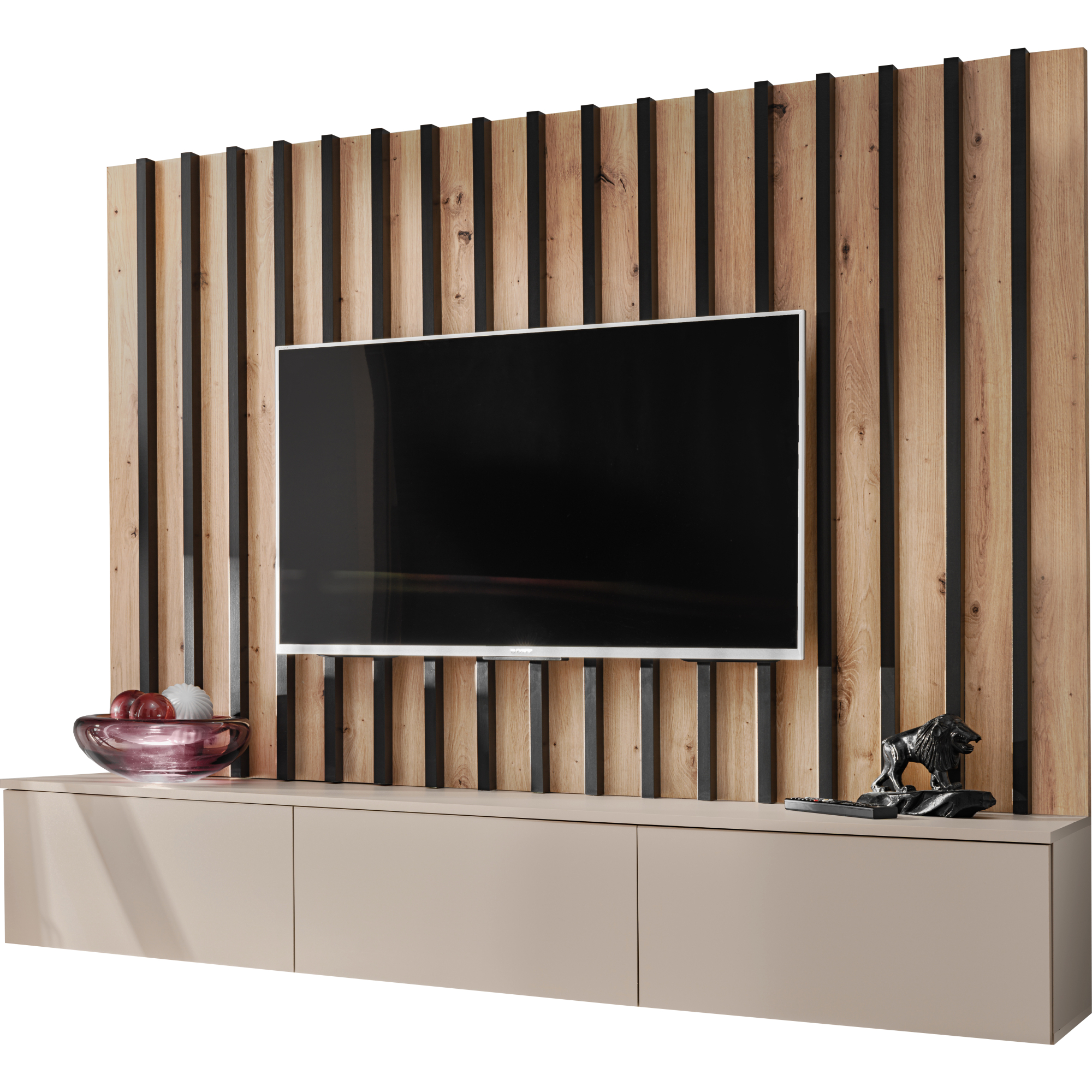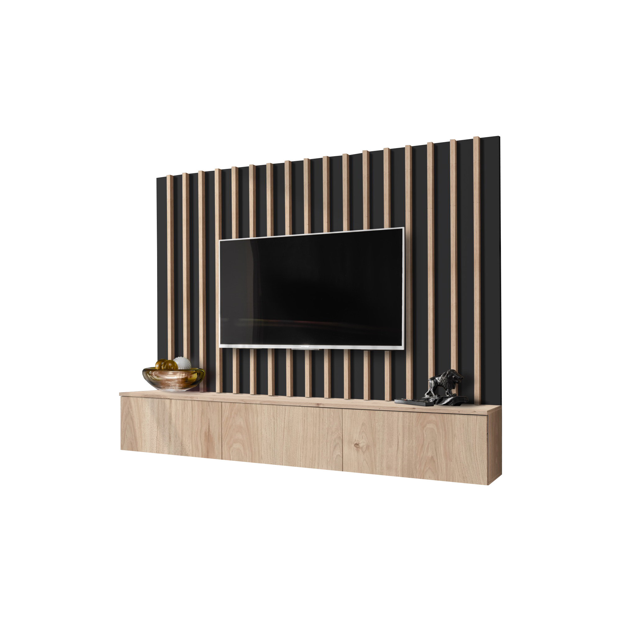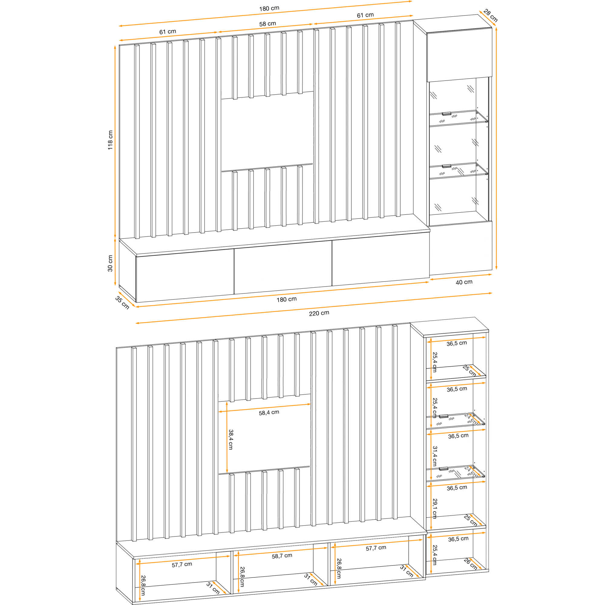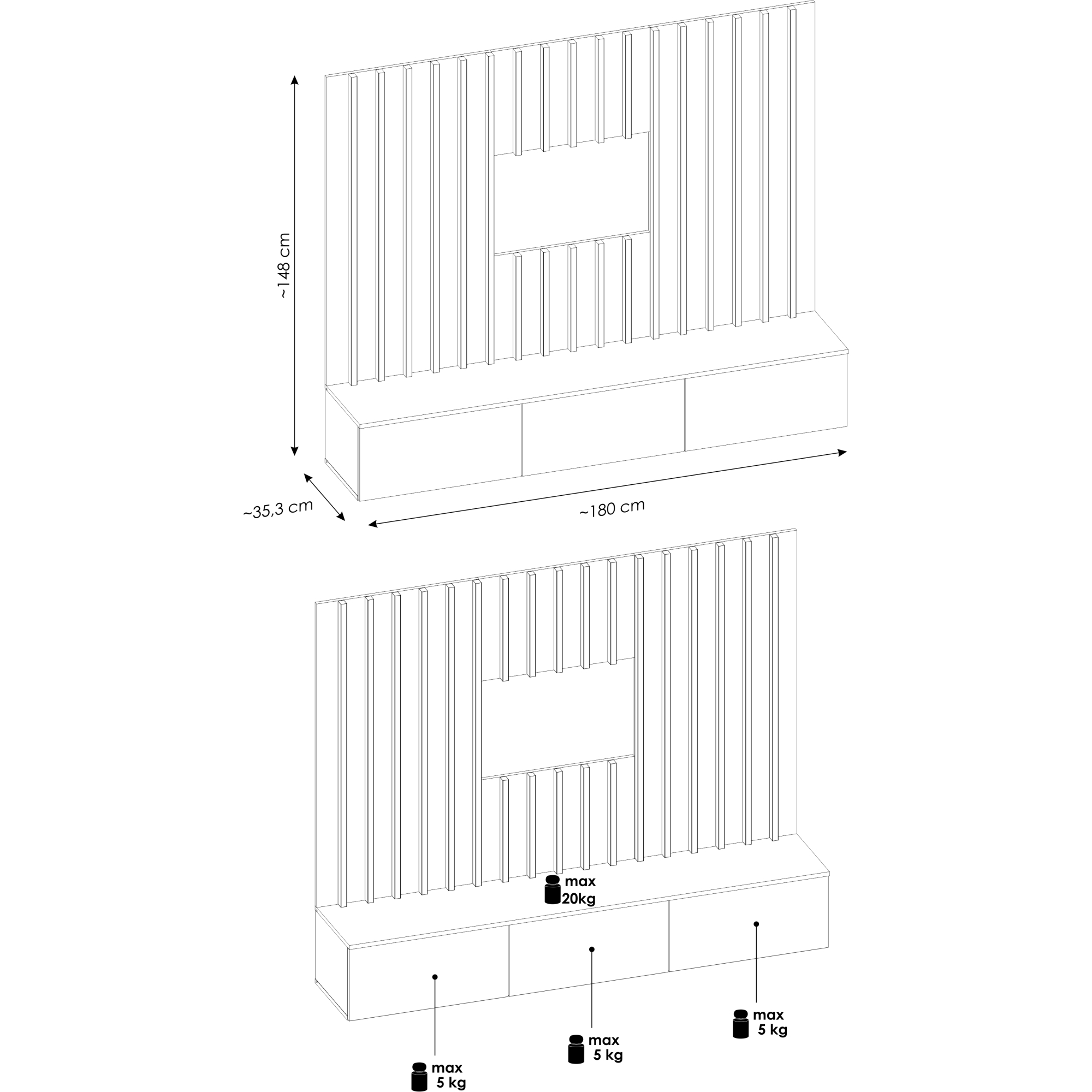 Meblościanka VERTI od ASM Meble to nowoczesne, funkcjonalne rozwiązanie dla osób poszukujących eleganckiego wyposażenia salonu. Cechuje się minimalistycznym designem z prostymi liniami, który doskonale wpisuje się w różne style aranżacji wnętrz. Zestaw oferuje kombinację zamkniętych szafek oraz przestrzeni otwartych, dzięki czemu można wygodnie przechowywać zarówno przedmioty codziennego użytku, jak i wyeksponować elementy dekoracyjne.