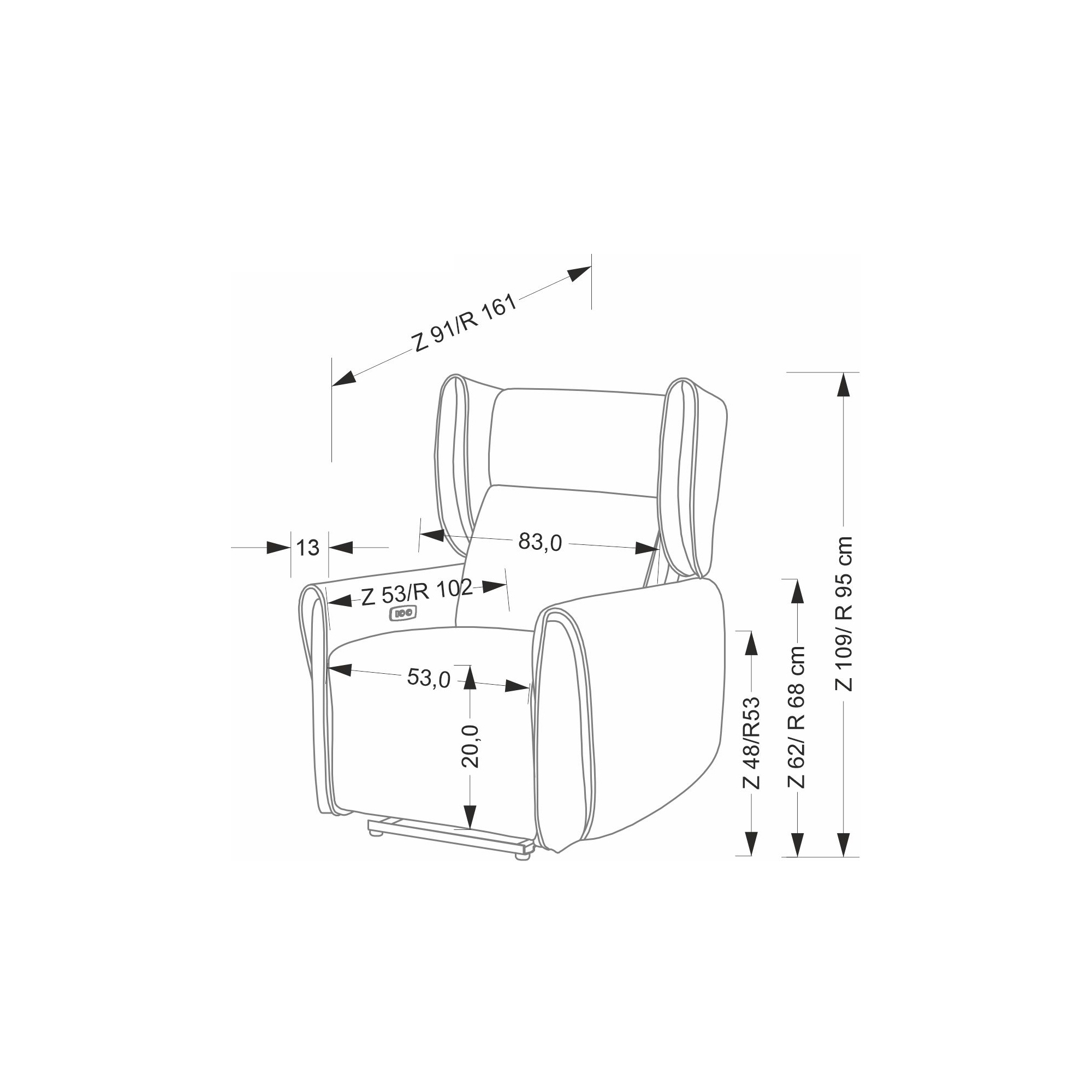 Wysokość oparcia 61