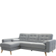 konfigurowalny Skandynawska forma i styl, który doskonale wpisze się niemal w każdą aranżację. Niebanalnego charakteru dodają charakterystyczne pikowania na oparciach i bokach. Poduszka siedziskowa sofy oraz poduszka oparciowa wypełniona została pianką wysokoelastyczną, co gwarantuje najwyższą jakość wypoczynku. Nóżki narożnika są wysokie i drewniane i sprawiają wrażenie bardzo subtelnych oraz stylowych. Całość prezentuje się niezwykle lekko.