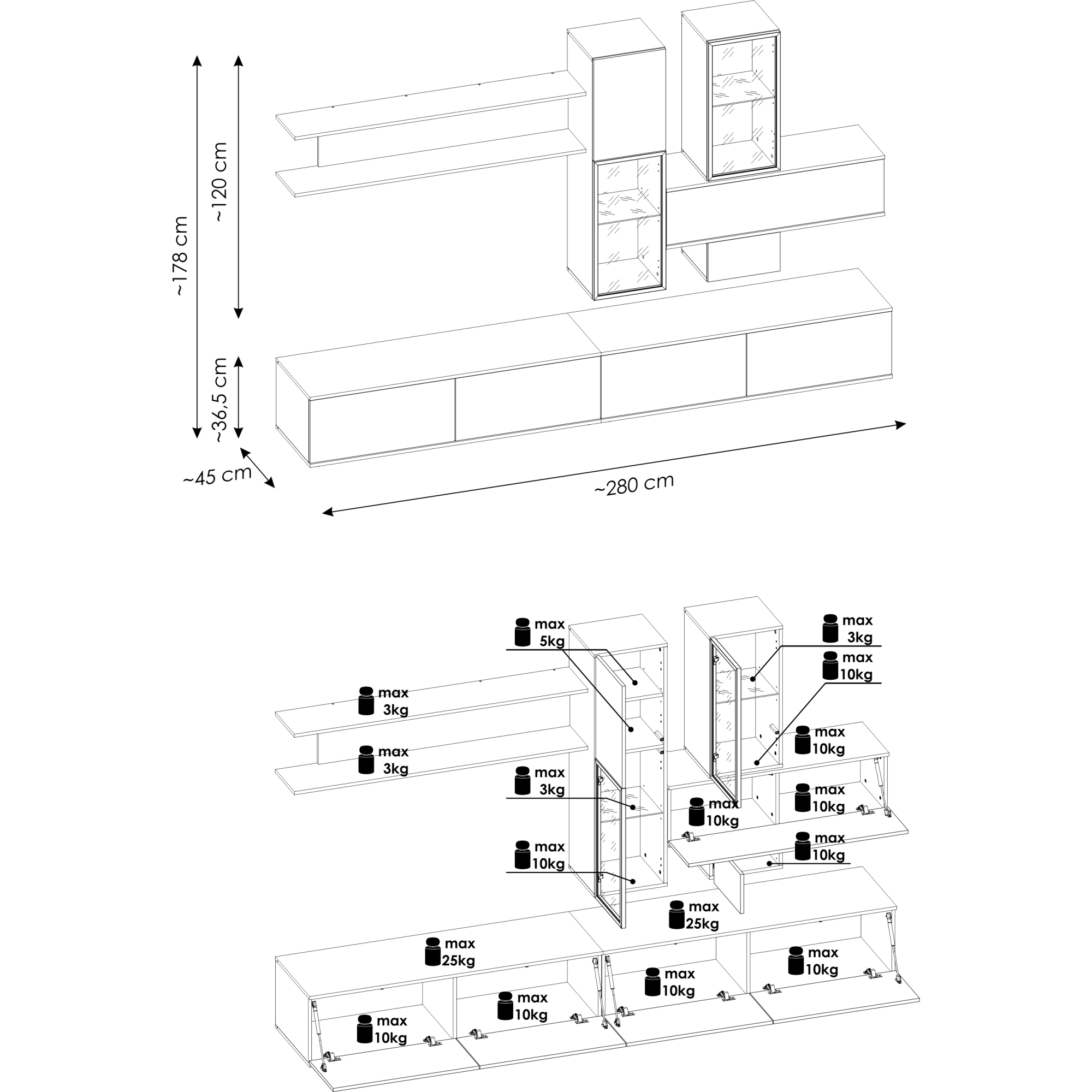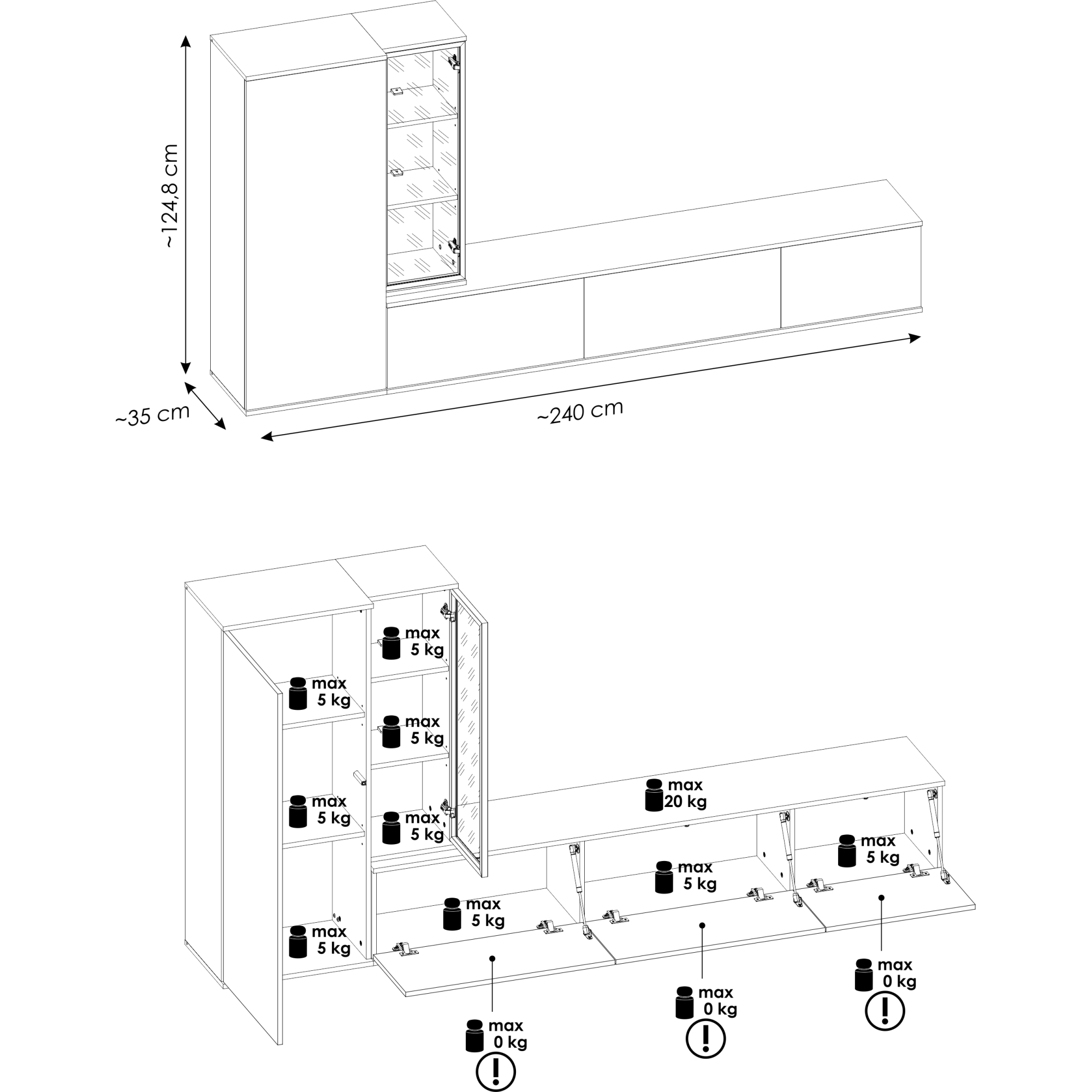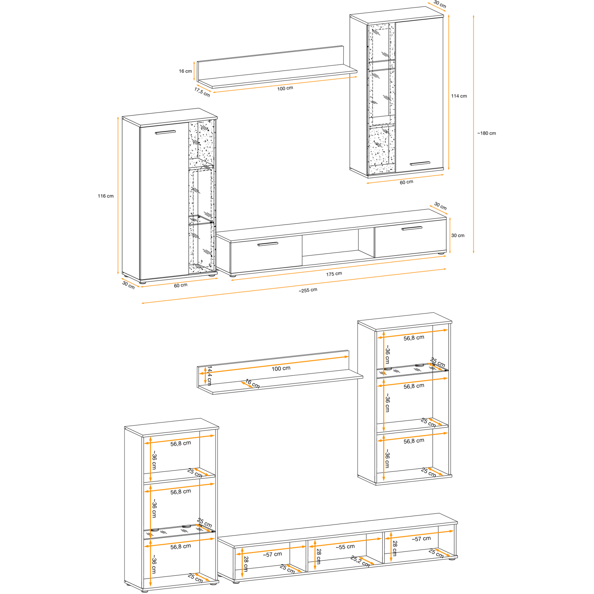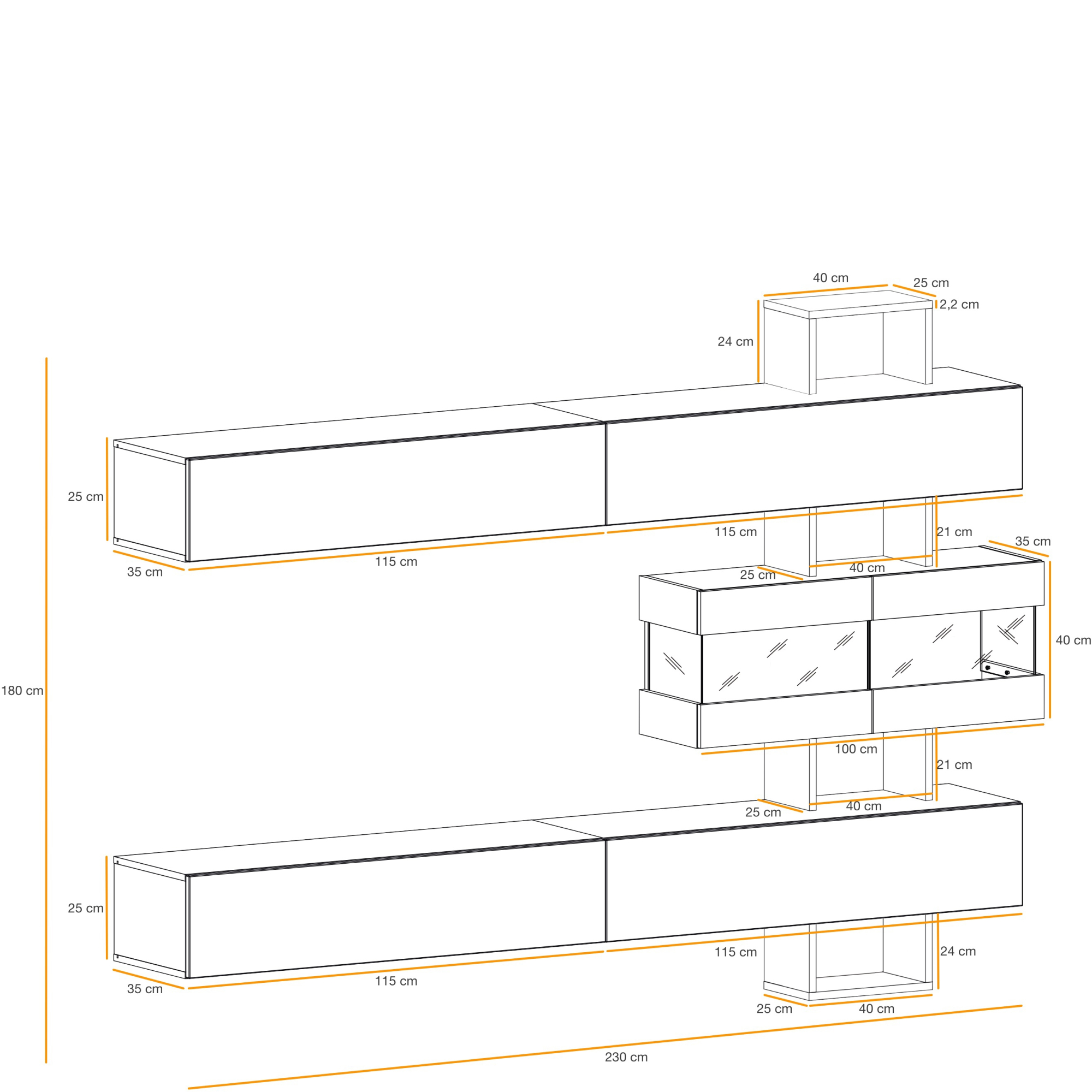 Meblościanka MINI Biały Mat / Biały Połysk Podstawowe