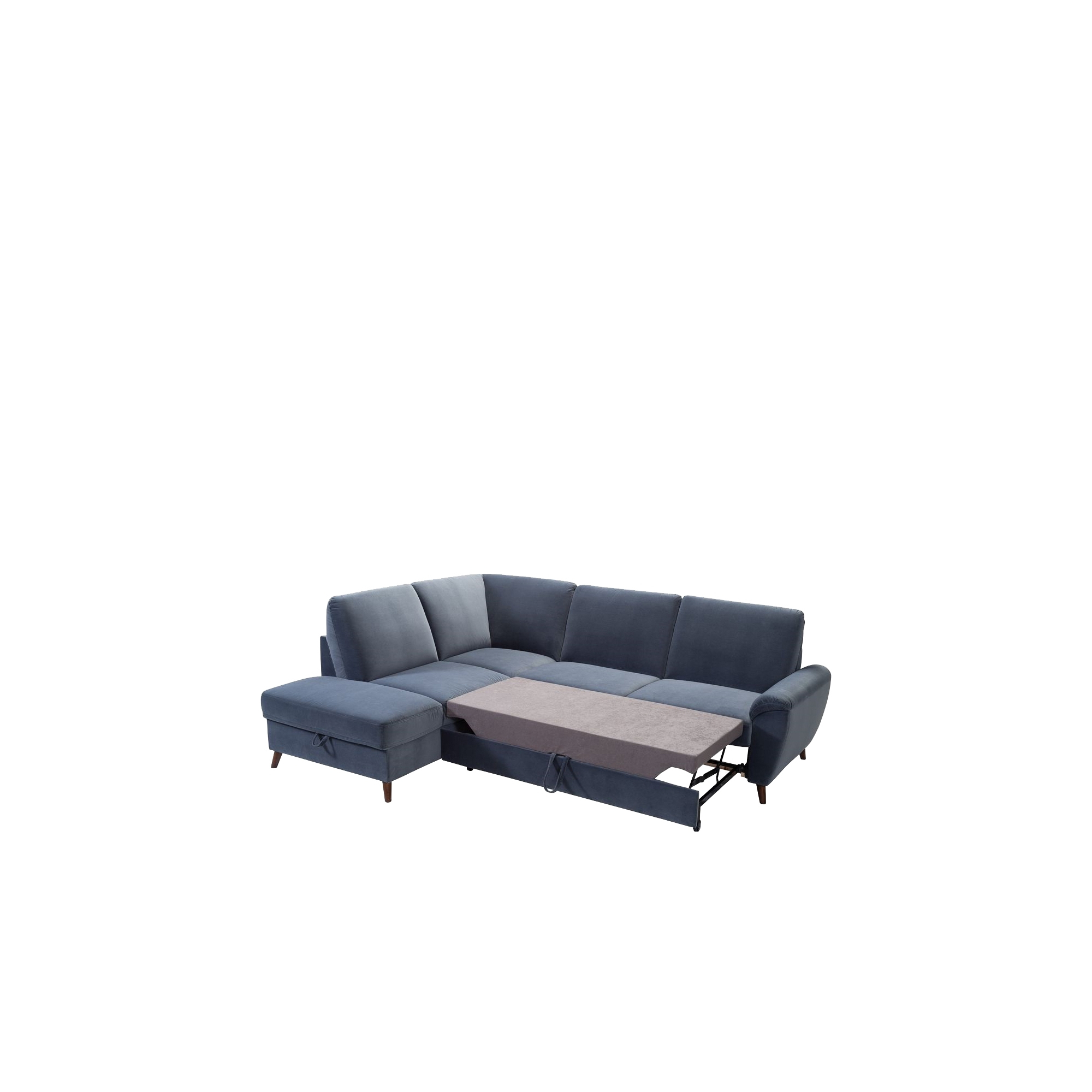 Praktycznego wymiaru meblowi dostarcza funkcja spania oraz niezwykle przestrzenny pojemnik na pościel. Wysoki komfort użytkowania mebla zapewnia sprężyna falista, dzięki której siedzisko jest trwałe i nie zapada się w najczęściej użytkowanych miejscach. Model dostępny jest w bogatej palecie barw i szerokim wachlarzu tkanin oraz skór, co dodatkowo zwiększa jego możliwości aranżacyjne.