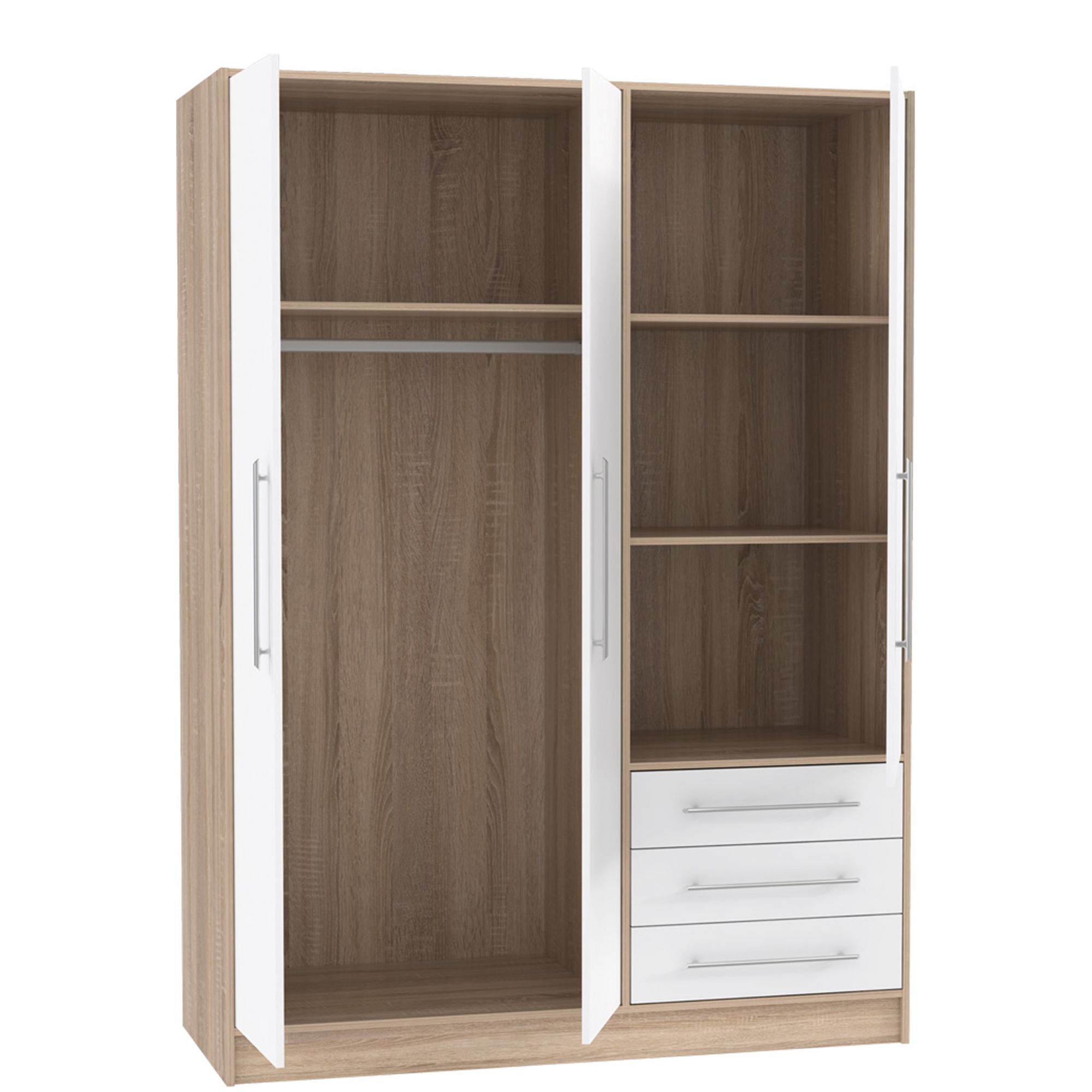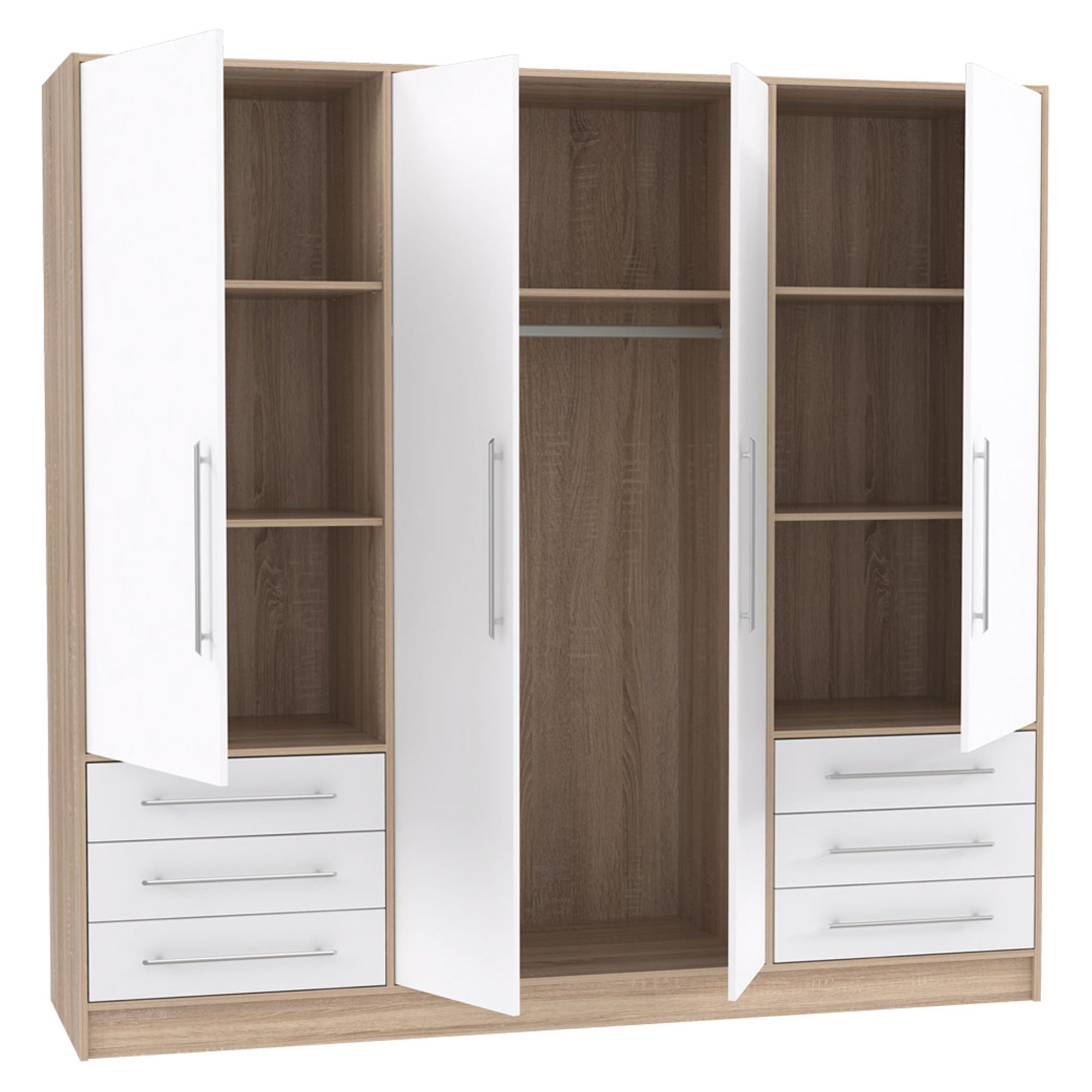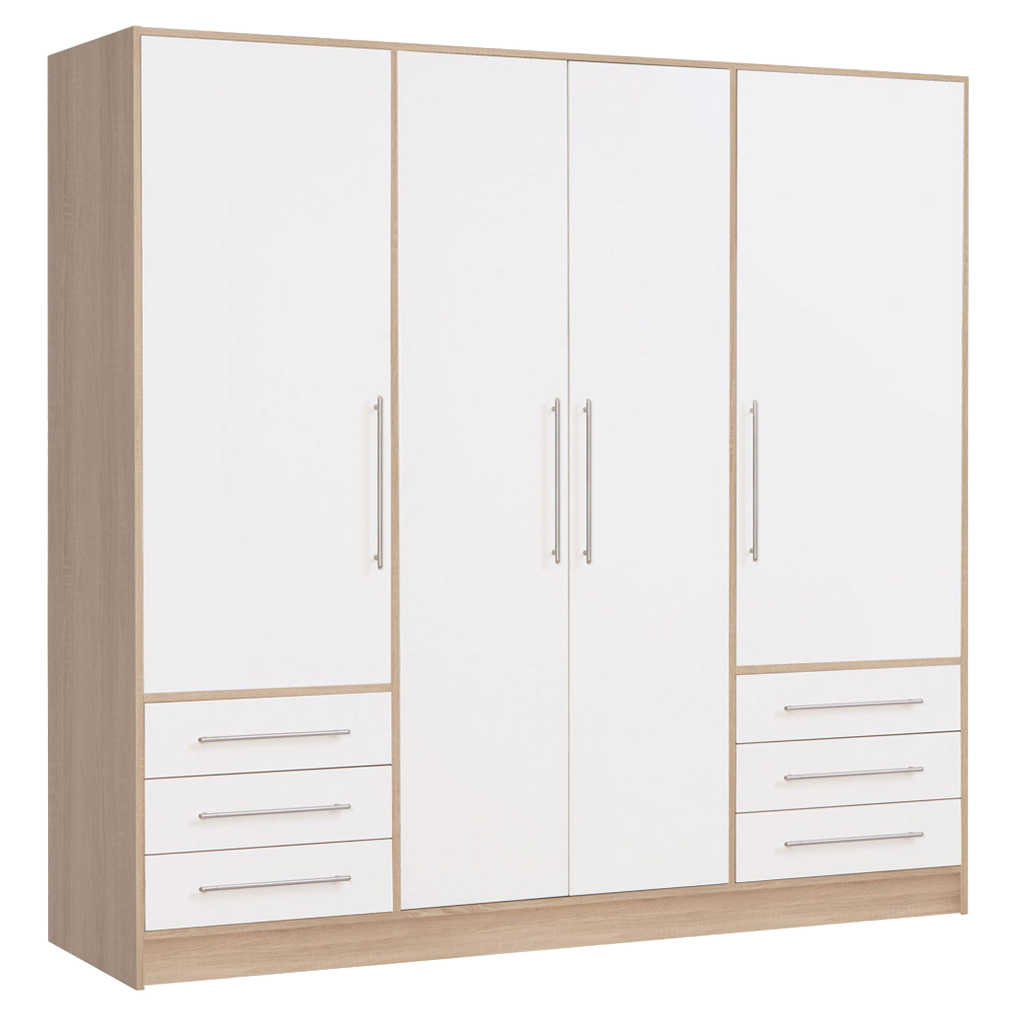 Biała szafa przesuwna Starlet White to model, który doskonale wpasuje się w nowoczesny wystrój sypialni, przedpokoju, pokoju młodzieżowego. Mebel posiada dwudrzwiowy front, z delikatnymi poziomymi frezowaniami. Wewnątrz znajdziesz drążki i górną półkę. Szafę możesz doposażyć w komplet 3 półek lub komodę wewnętrzną, co ułatwi segregację ubrań. Dla większego komfortu użytkowania proponujemy hamulec do drzwi - zapewni ciche zamykanie, oraz listwę okaląjcą z oświetleniem LED.