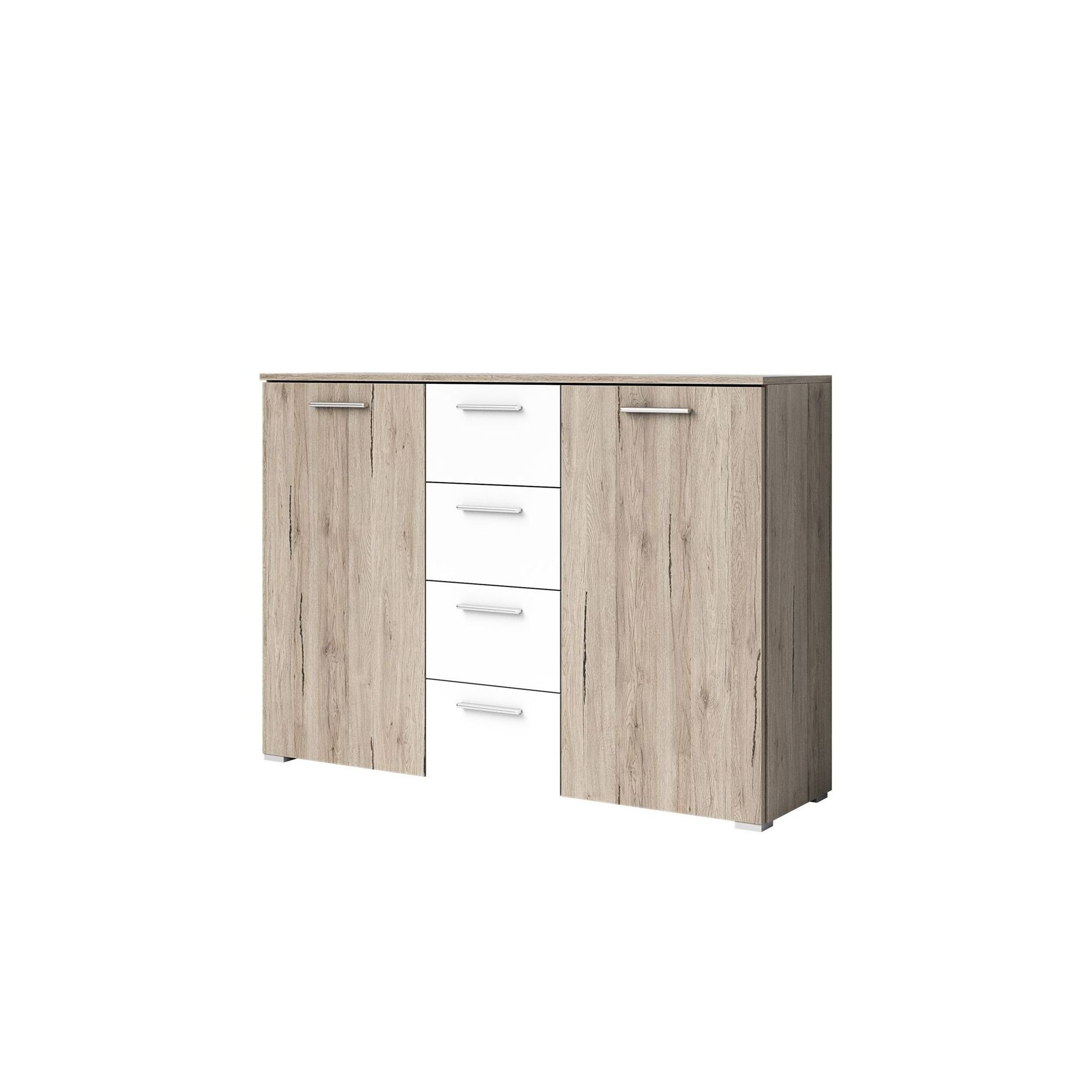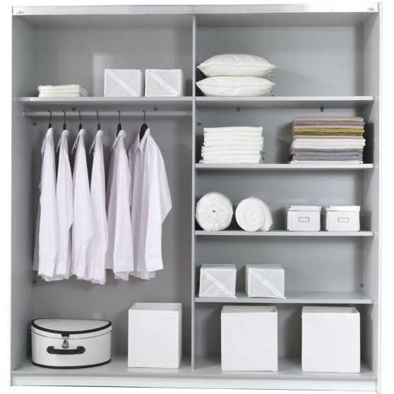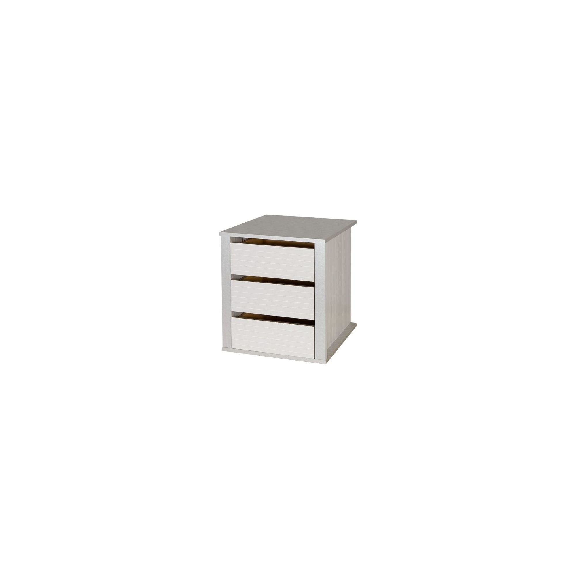 Kontenerek Georgia z 3 szufladami pomoże uporządkować wnętrze szafy. Możesz zamontować go zamiast jednej z półek wewnętrznych. Wykonany z laminowanej płyty meblowej z kulkowymi prowadnicami szuflad.