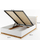 Pojemnik na pościel został wyposażony w system podnośników gazowych, ułatwiających podnoszenie i opuszczanie stelaża, oraz wygodny uchwyt. Co istotne, skrzynia nie jest szczelnie zamknięta - wykonane w niej otwory zapewniają odpowiednią cyrkulację powietrza. Stelaż, oprawiony w solidną metalową ramę, posiada 2 rzędy po 25 sztuk listew elastycznych zwiększających komfort użytkowania materaca.
