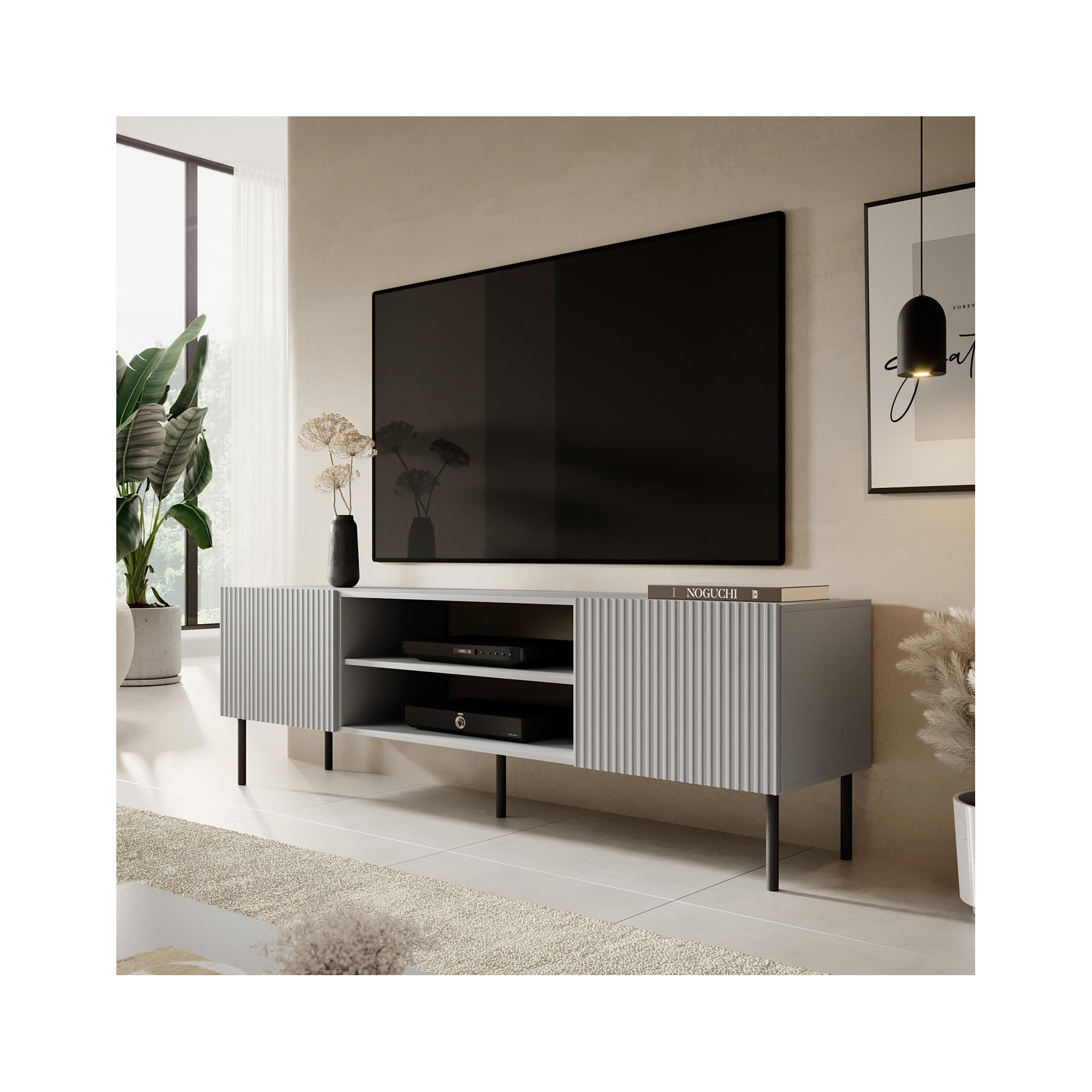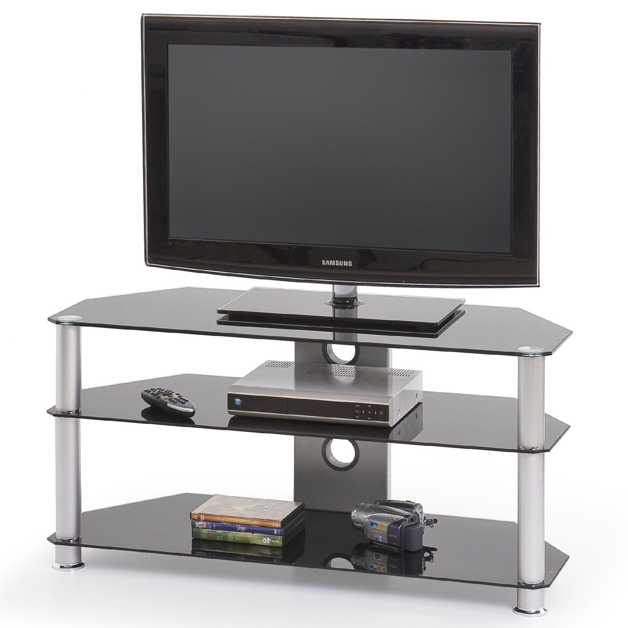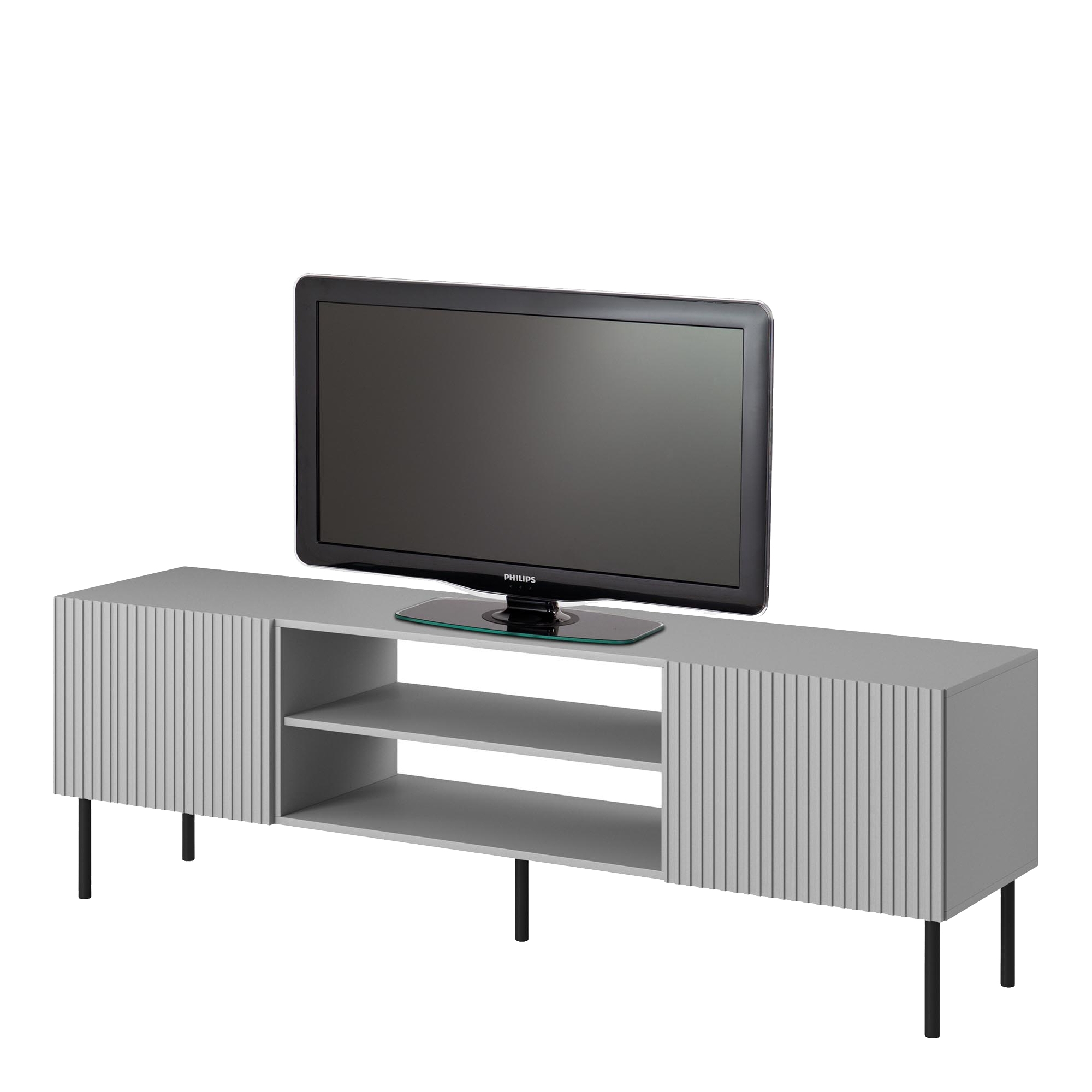Szafka RTV-3 firmy Halmar to mebel nowoczesny, który wykorzystasz w wielu aranżacjach. Łagodne linie bryły doskonale komponują się z klasyczną, ponadczasową czernią oraz nóżkami wykonanymi z piaskowanego aluminium i szklanymi półkami. Trzy otwarte półki pomieszczą telewizor, dekoder i odtwarzacz, a w razie potrzeby również płyty i akcesoria RTV. Natomiast w tylnym pionowym elemencie umieszczono dwa otwory, które pozwolą na wygodne odprowadzenie kabli. Solidnie wykonana szafka pod telewizor RTV-3 pomoże w stworzeniu domowego kącika multimedialnego. Dzięki uniwersalnej stylistyce sprawdzi się również we wnętrzach minimalistycznych i tradycyjnych. To dodatki zadecydują o tym, jaki charakter nadasz swojemu salonowi.
