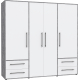Szafa ubraniowa 4-drzwiowa MKSS841-C264 Biały / Beton Jasnoszary