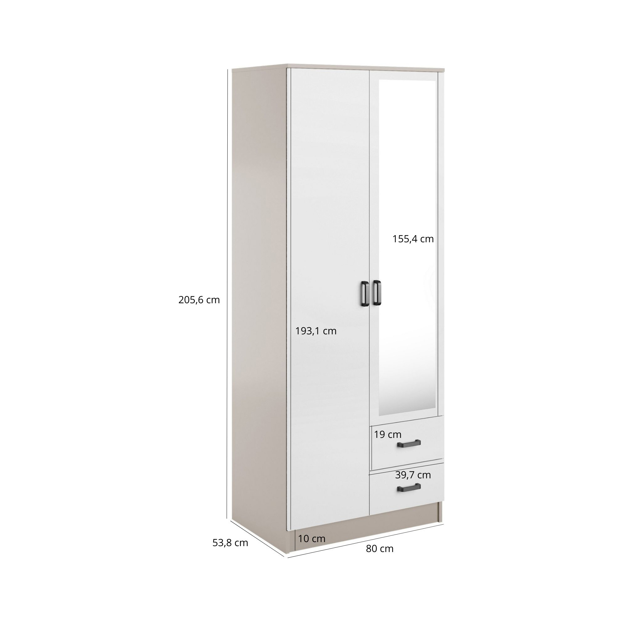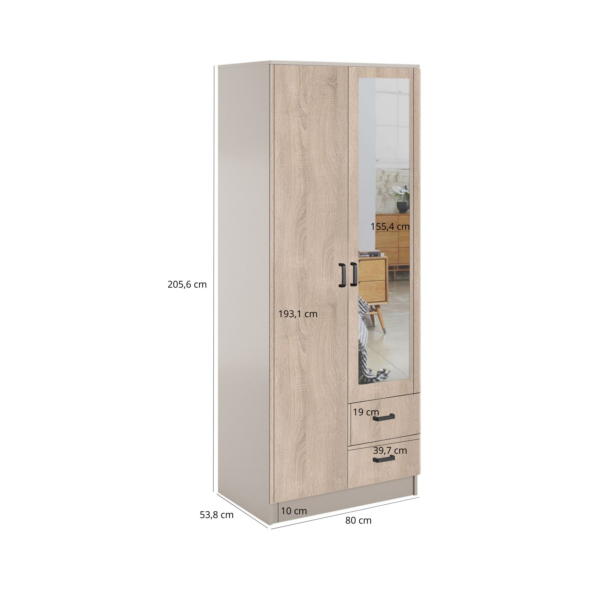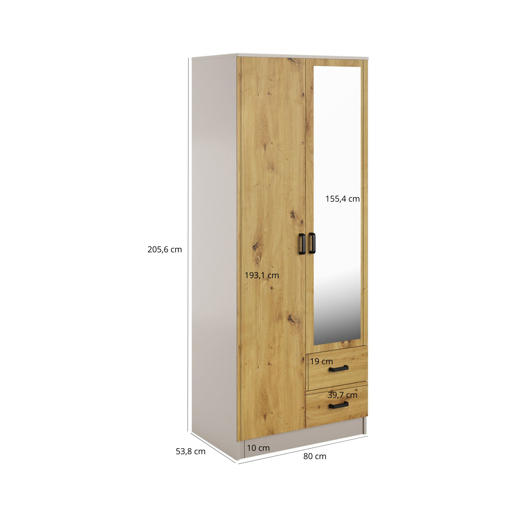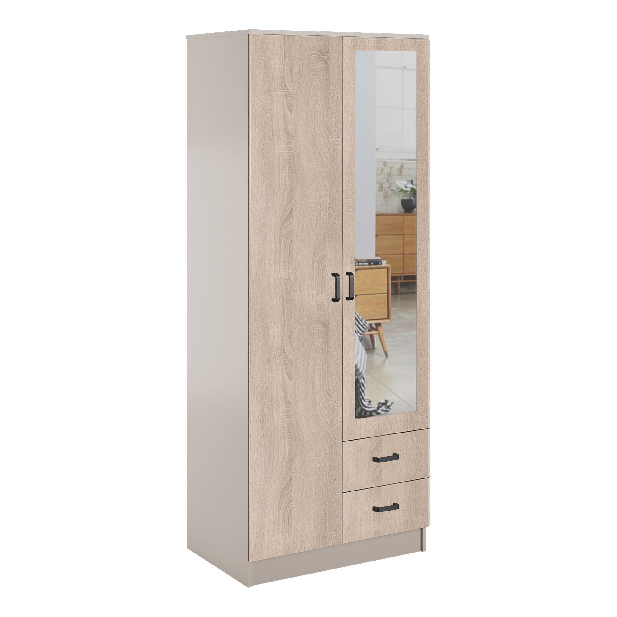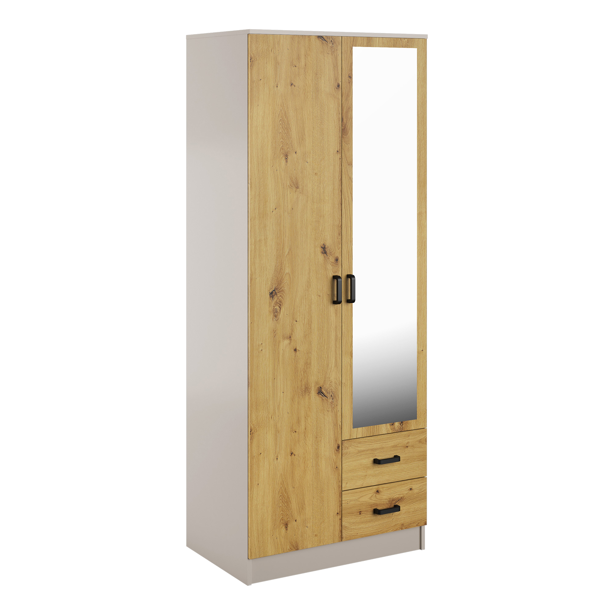 Szafa z lustrem dwudrzwiowa z szufladami KAMI Dąb Sonoma / Biały Mat KAMI Podstawowe