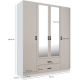Szafa z lustrem 4-drzwiowa z szufladami KAMI Biały Mat / Kaszmir Mat