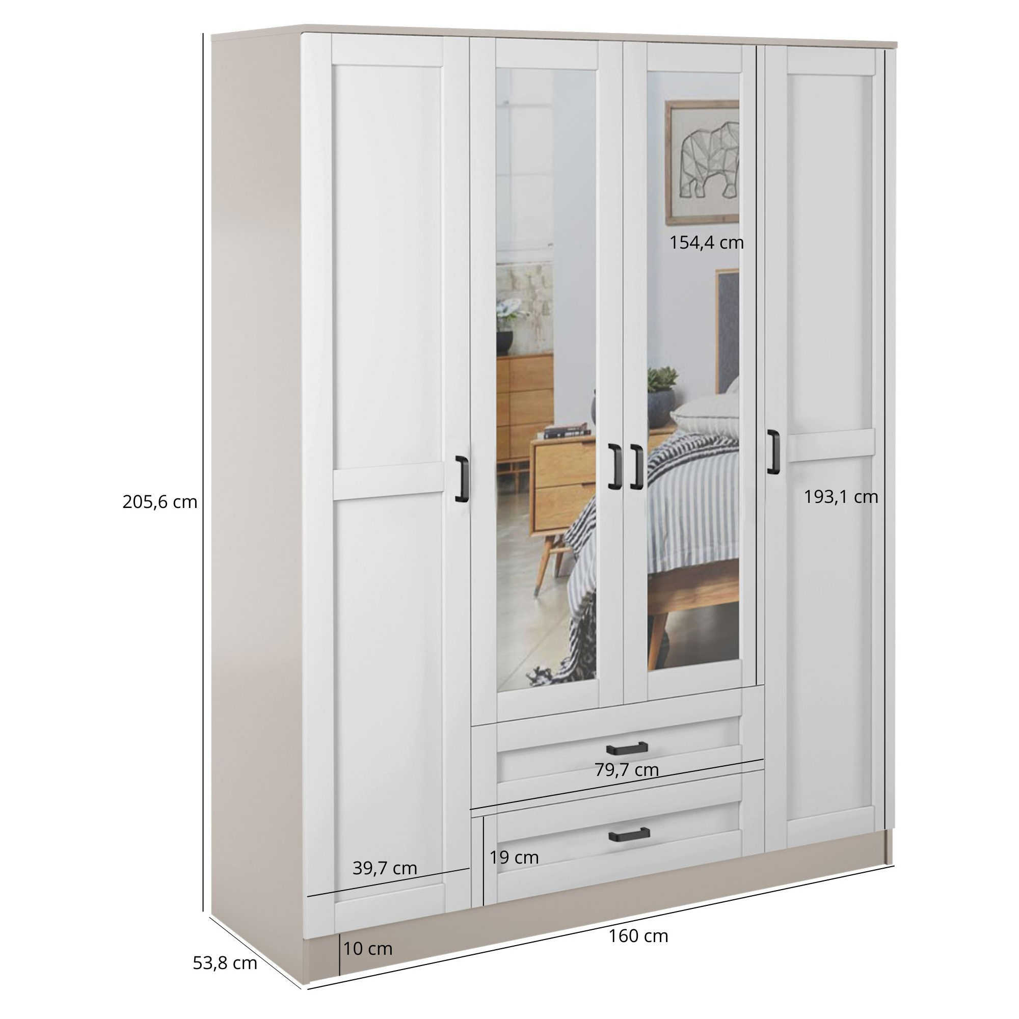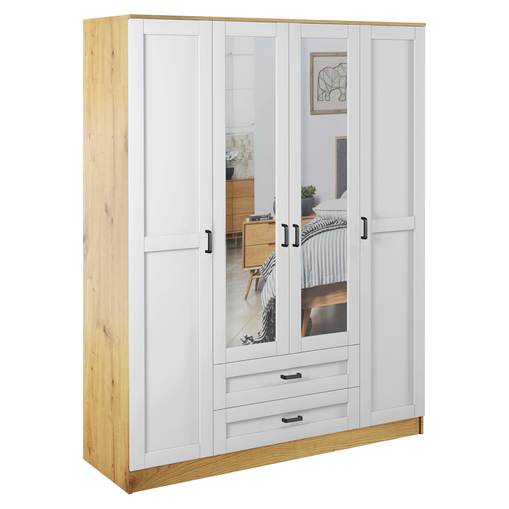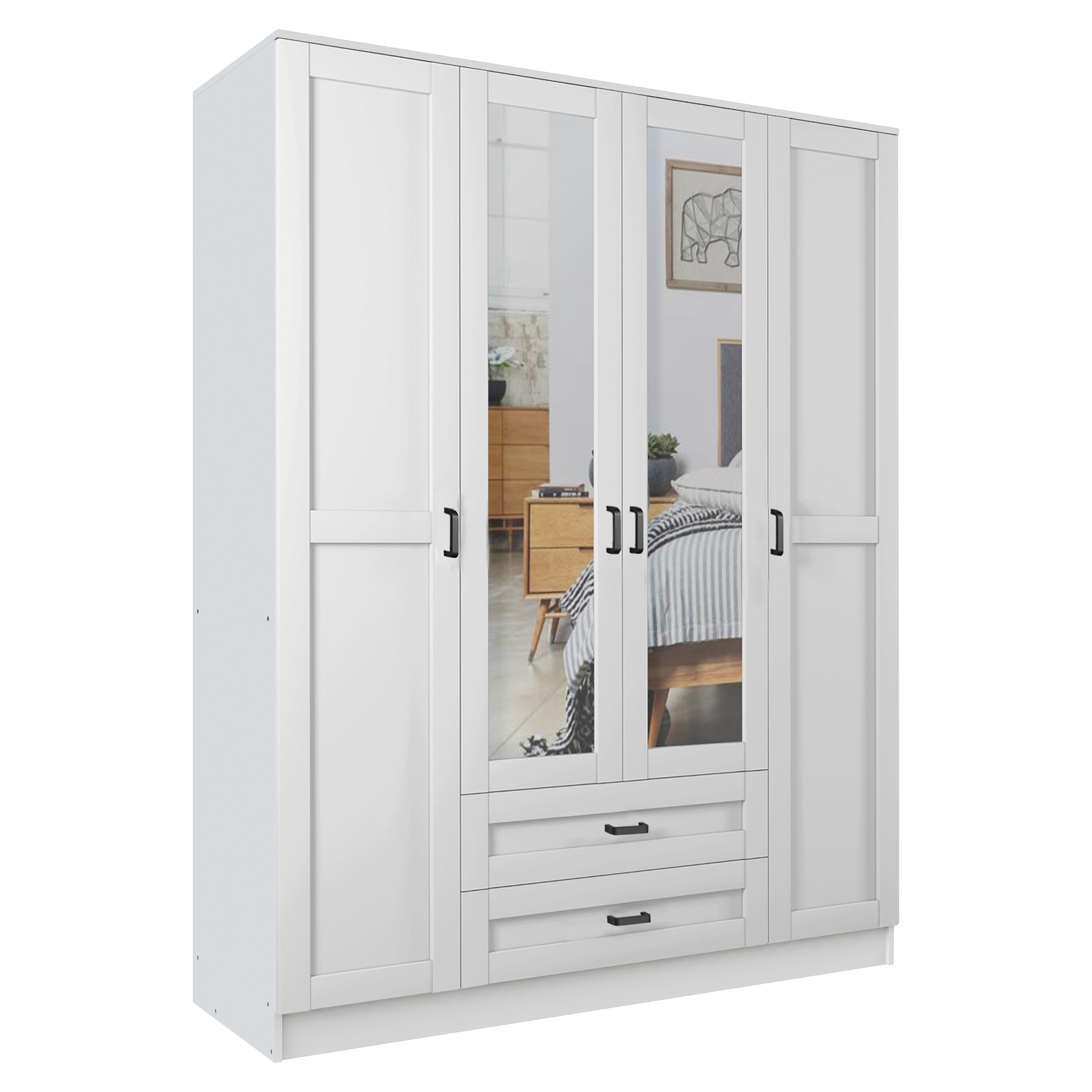 Szafa z lustrem 4-drzwiowa z szufladami KAMI Kaszmir Mat / Biały Mat KAMI Podstawowe