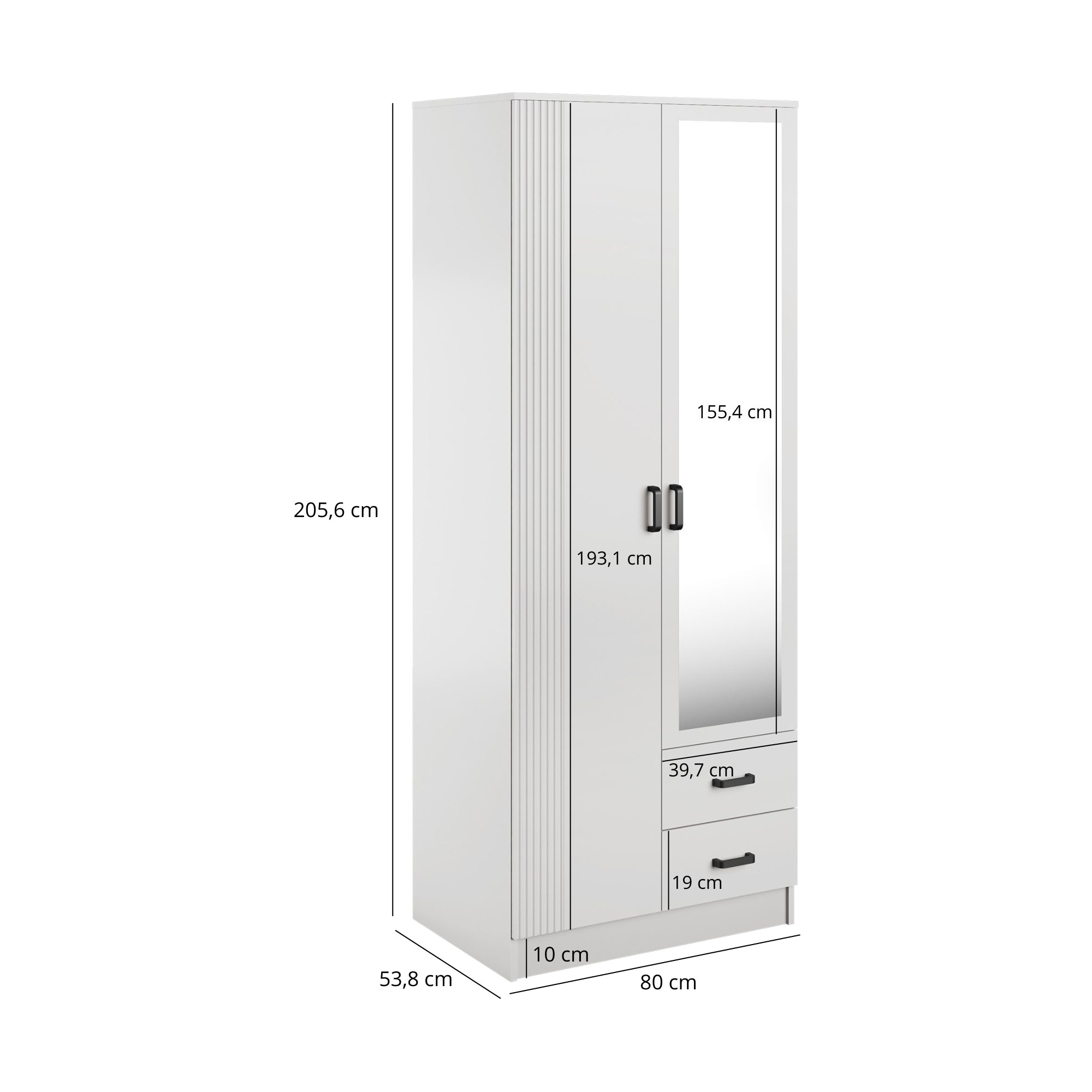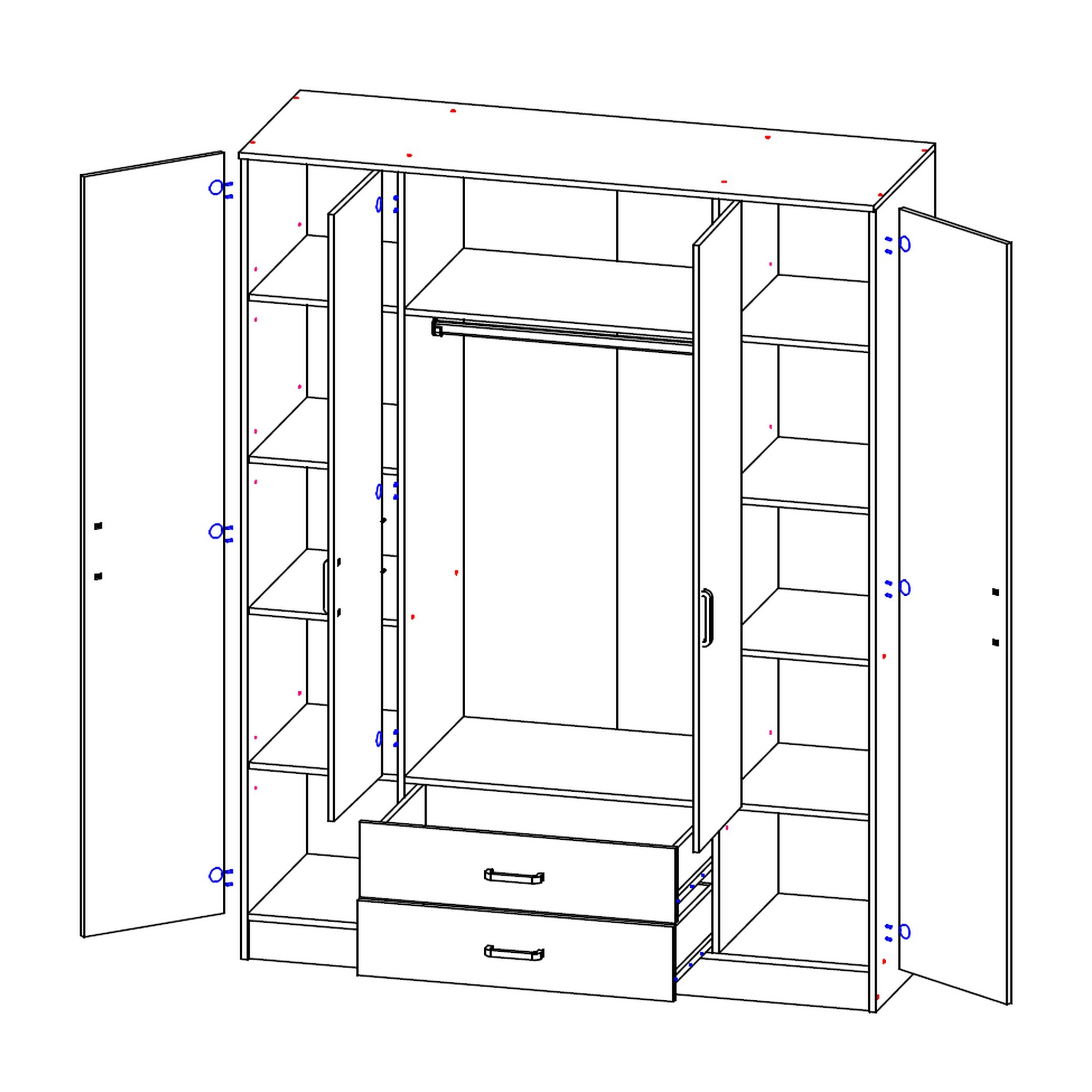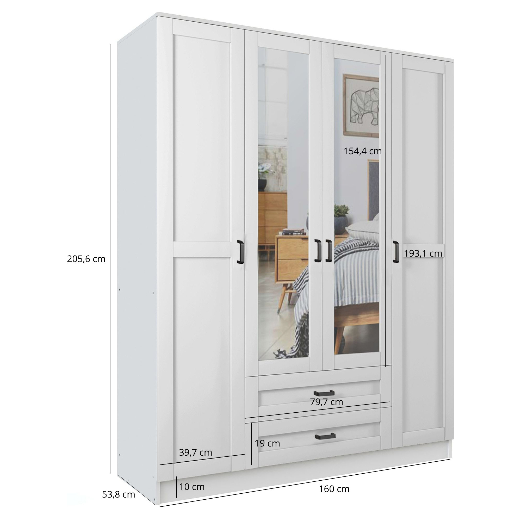 Szafa z lustrem 4-drzwiowa z szufladami KAMI Kaszmir Mat / Biały Mat KAMI Podstawowe
