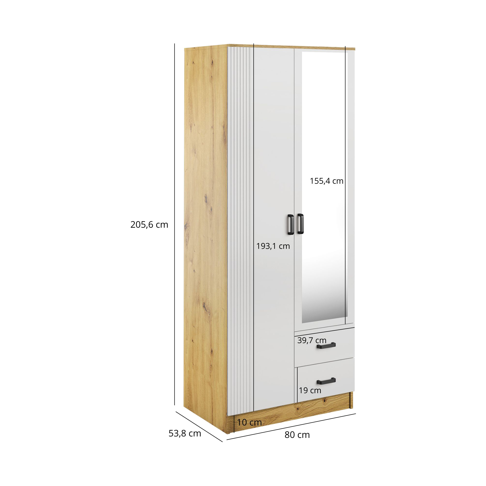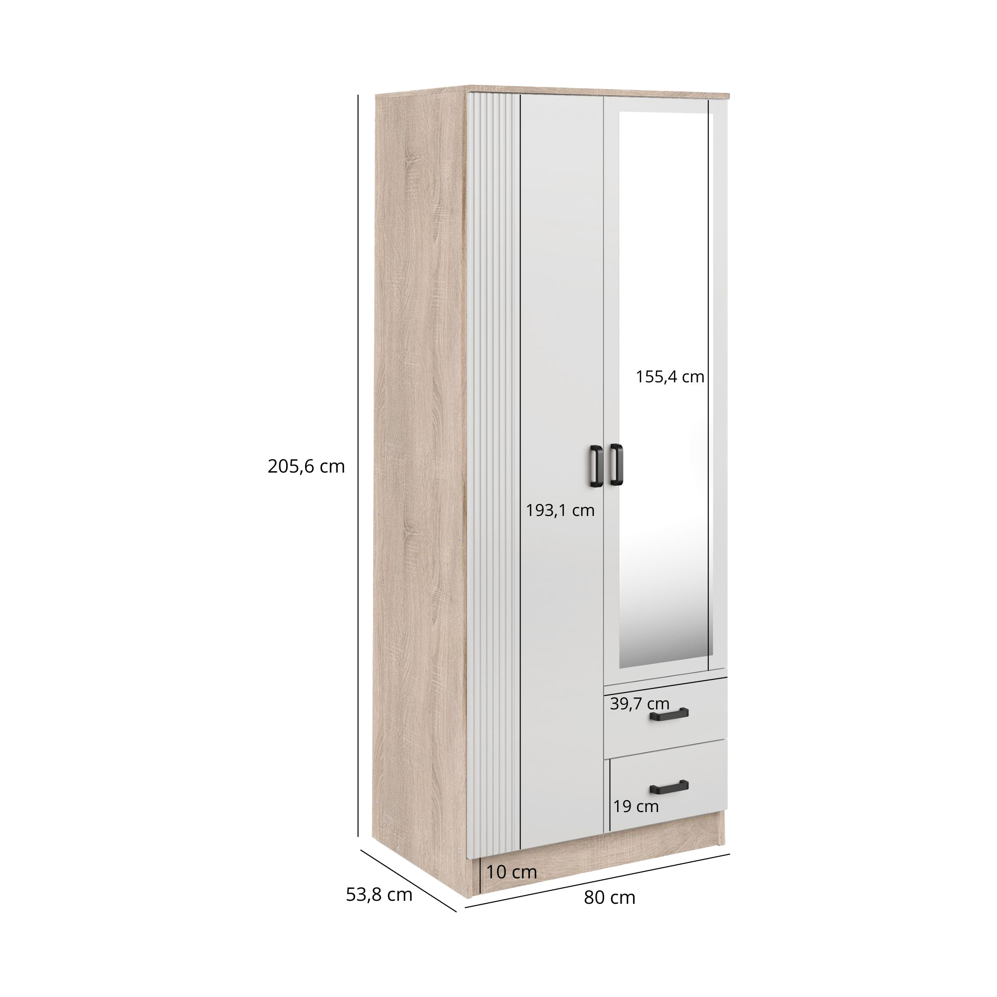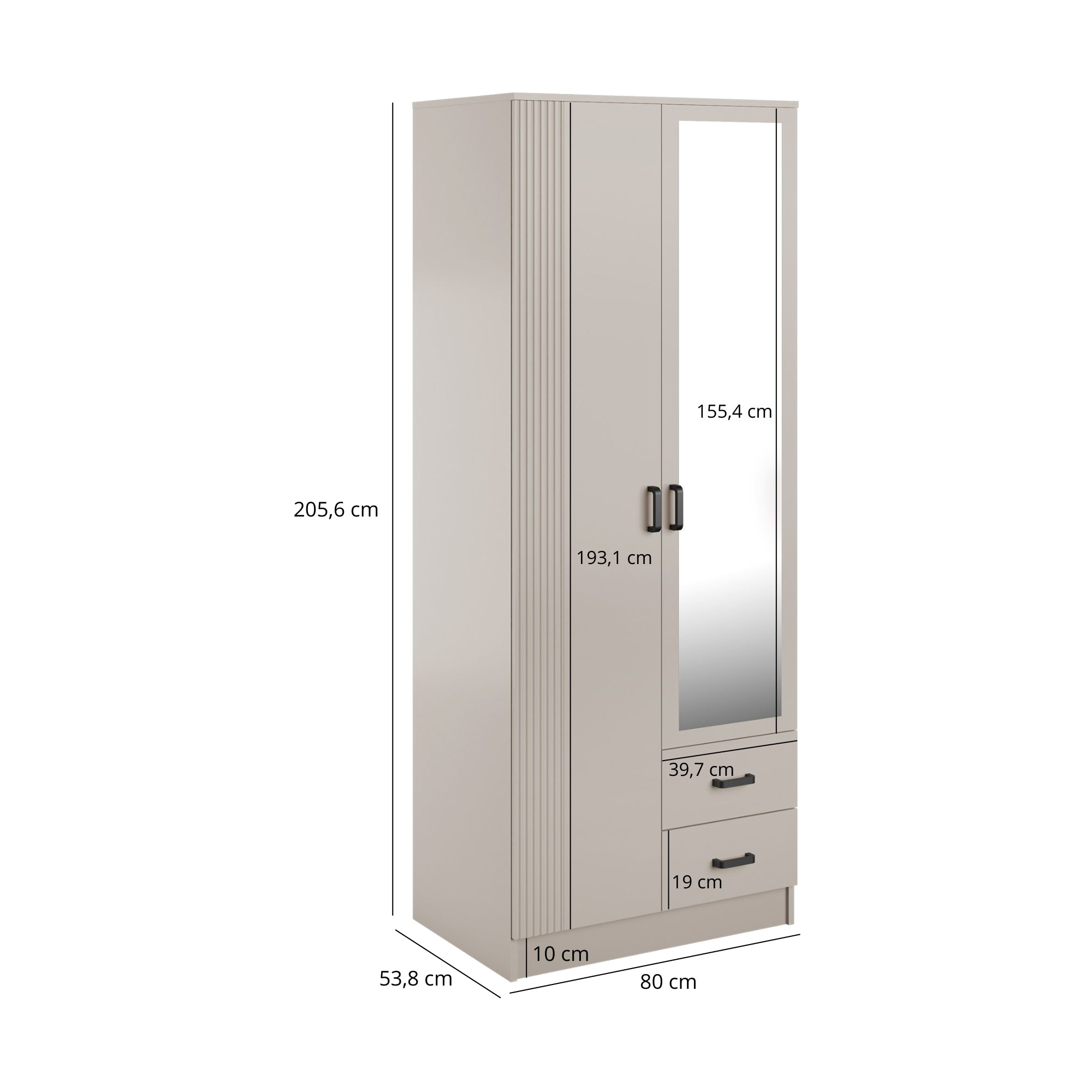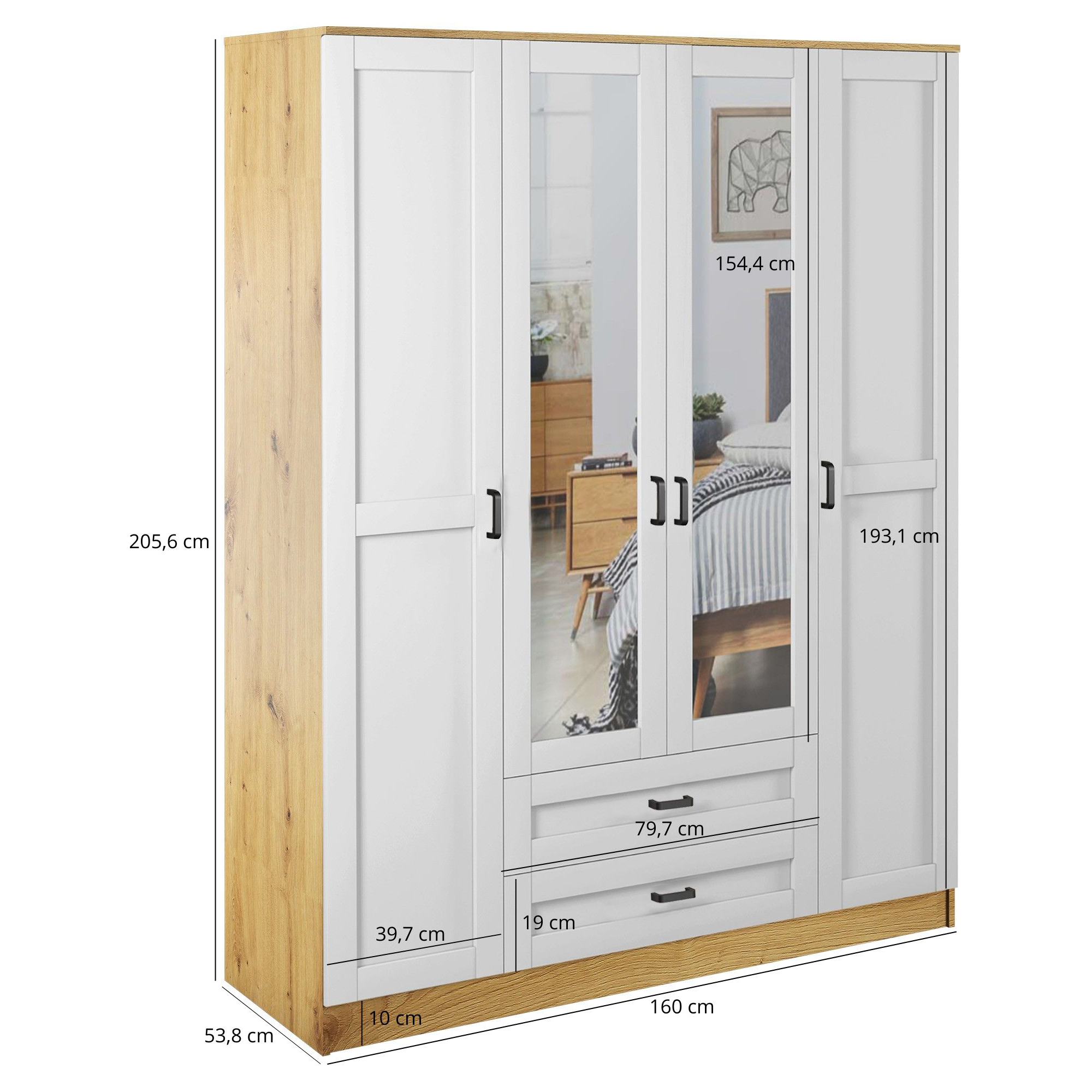 Szafa z lustrem 4-drzwiowa z szufladami KAMI Kaszmir Mat / Biały Mat
