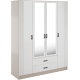 Szafa z lustrem 4-drzwiowa z ryflowanym frontem KAMI Kaszmir Mat / Biały Mat