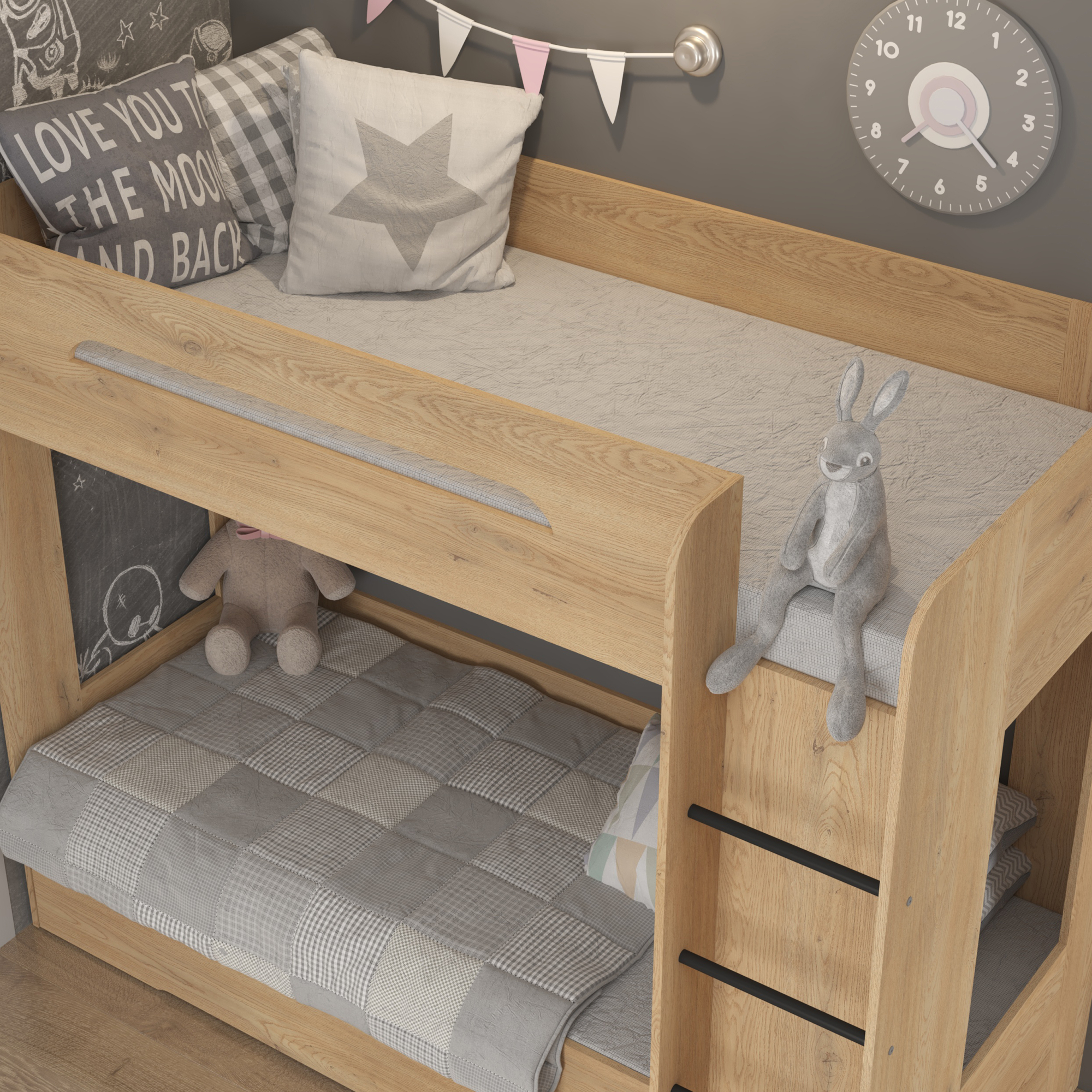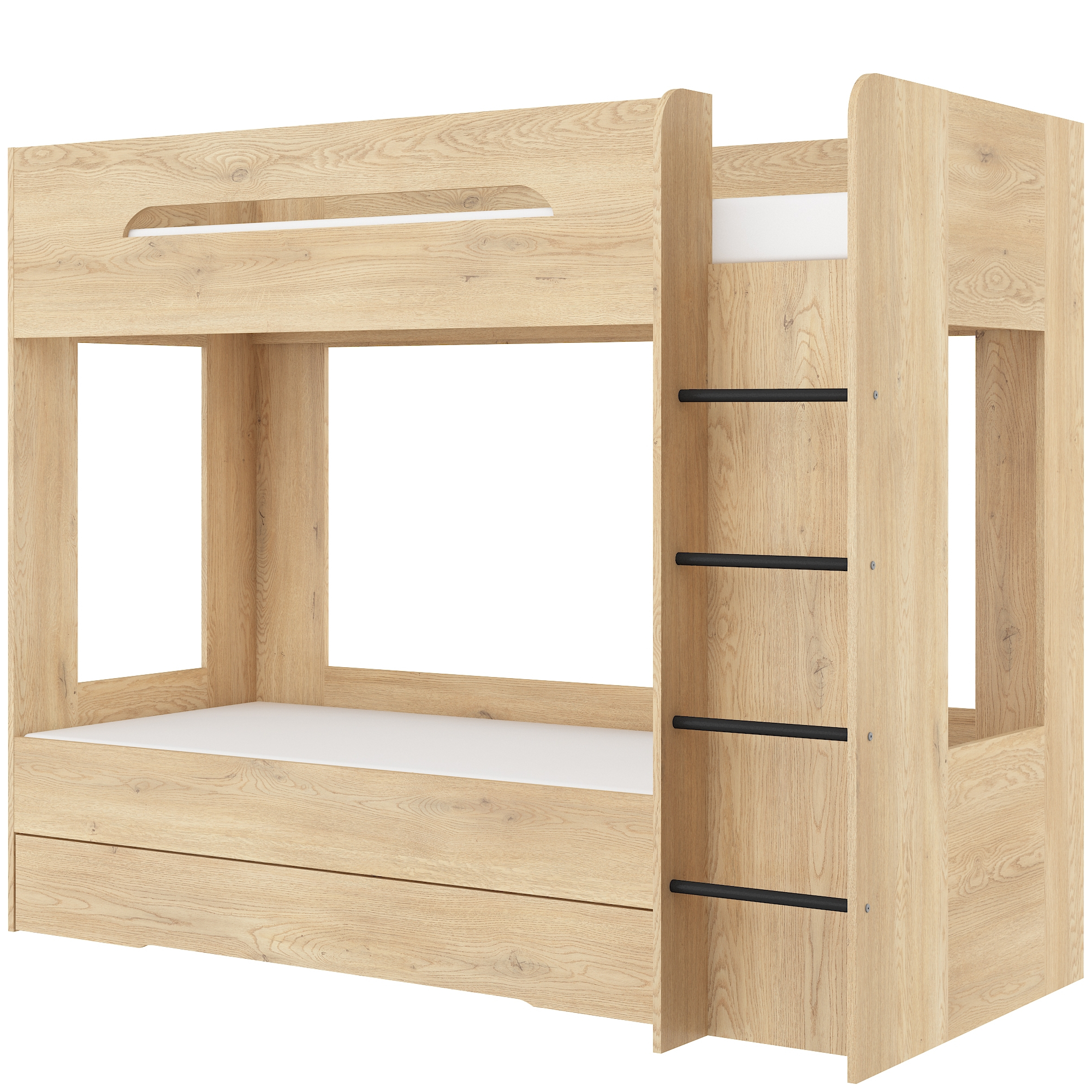 Łóżko piętrowe podwójne 80 x 200 cm BLANC Prawe Dąb Cremona
