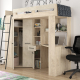 Łóżko piętrowe FLOOR L z biurkiem i szafą Dąb Endgrain / Granada Migdał