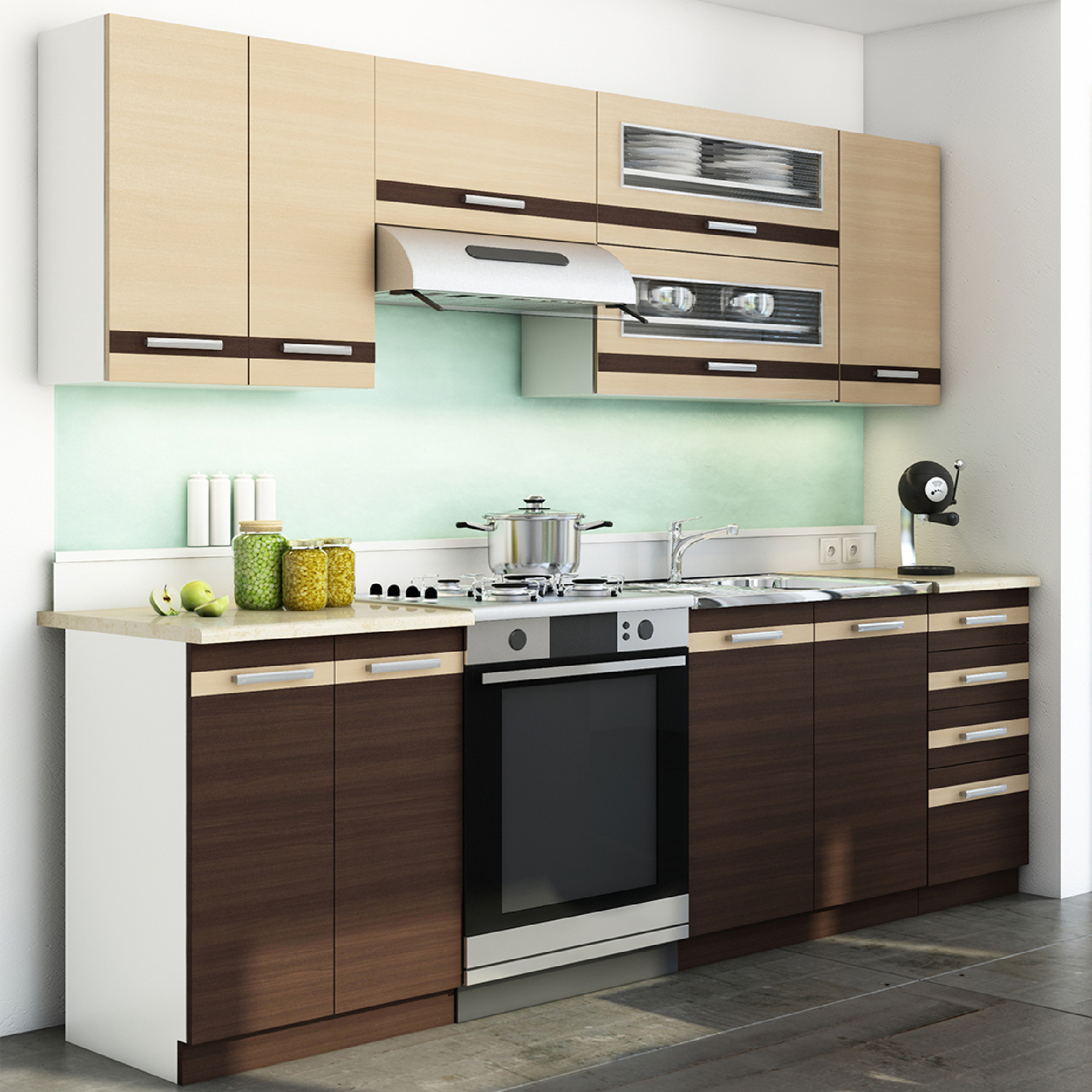 Zestaw mebli kuchennych 1,8/2,4 Lungo&Macchiato to linia produktów zaprojektowanych zgodnie z myślą o praktycznym wykorzystaniu przestrzeni. Wyróżniają się zastosowaniem ergonomicznych rozwiązań zamkniętych w nowoczesnej i klasycznej estetyce. Zestaw Lungo&Macchiato polskiego producenta Stolkar to produkty solidnej jakości, które zachęcają ciekawym stylem oraz funkcjonalnością. Pozwalają na stworzenie nie tylko praktycznej, ale i uniwersalnej, ponadczasowej aranżacji. Dzięki zestawowi Lungo&Macchiato Twoja kuchnia będzie pięknie umeblowana, a Ty ergonomicznie zagospodarujesz dostępną przestrzeń.
