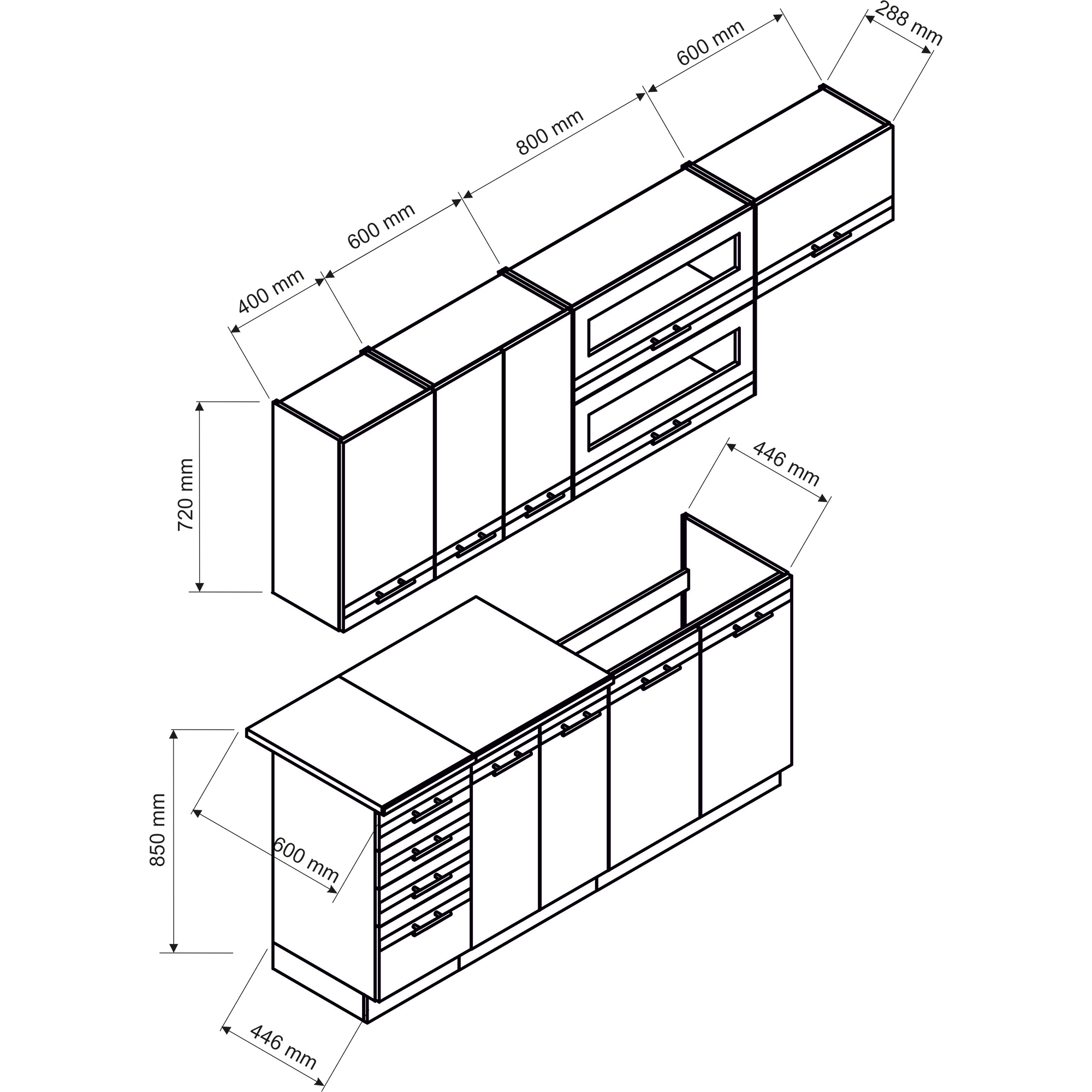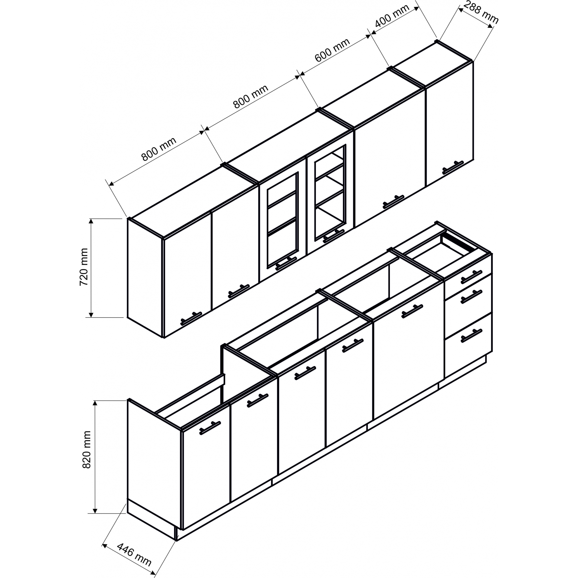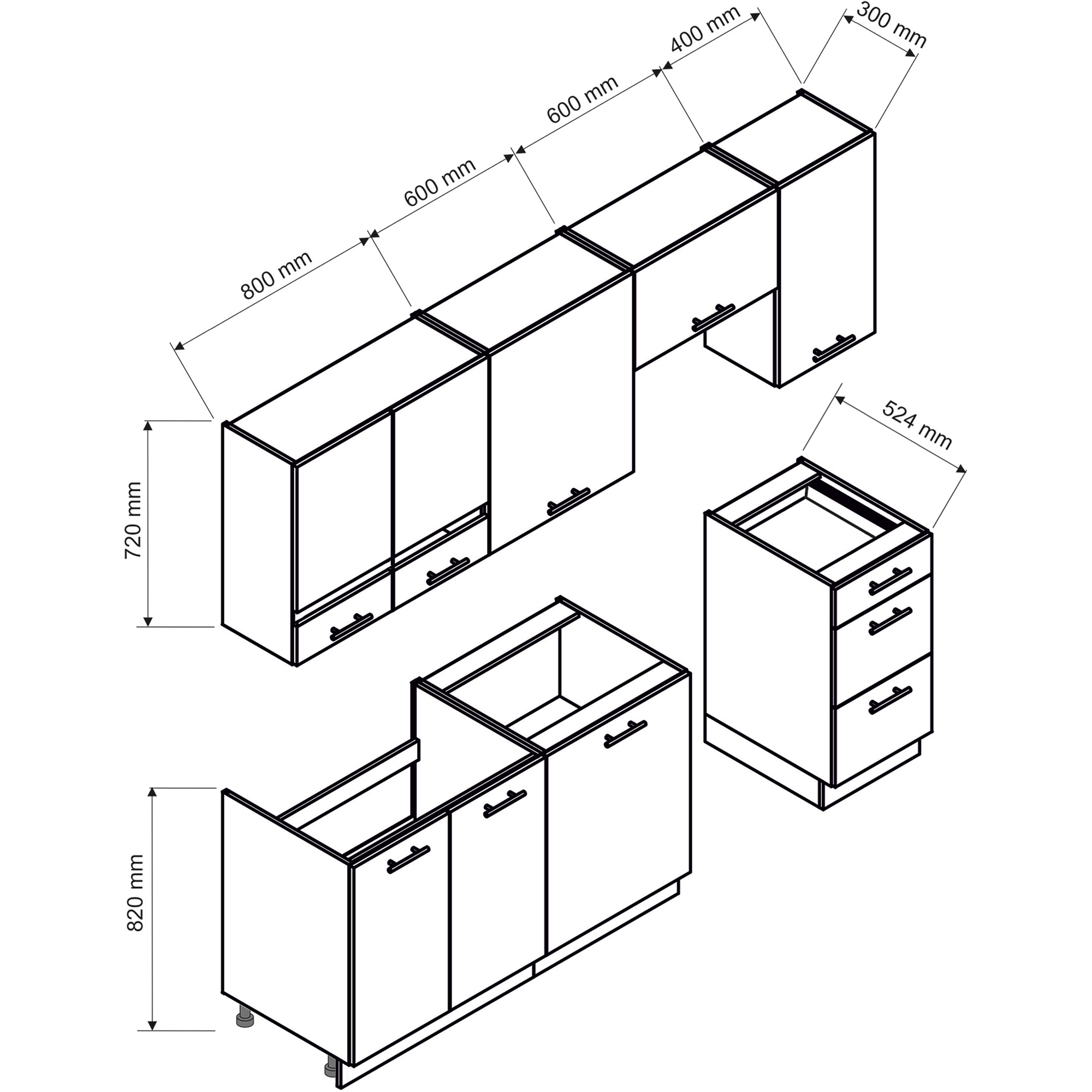 UWAGA!! Niemożliwe jest zrezygnowanie z wybranych elementów zestawu lub zamiana danej szafki na inną.